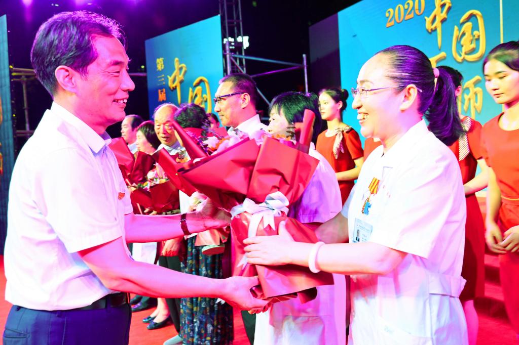 随后,活动进入颁奖典礼环节,共有80余名医师代表接受表彰,参会领导分别为全国名中医、中医药高等学校教学名师、岐黄学者、全国最美医生、全国医德标兵、河南高层次人才B类代表、河南省五一劳动奖章、郑州市五一劳动奖章、河南省“最美医生”、抗疫省级专家代表、抗疫省内支援地市专家代表、机场派驻专家代表、驰援武汉医师、抗疫院内会诊专家代表、医技科室抗疫人员代表、预检分诊医师代表等颁发了荣誉证书、奖杯及奖章。