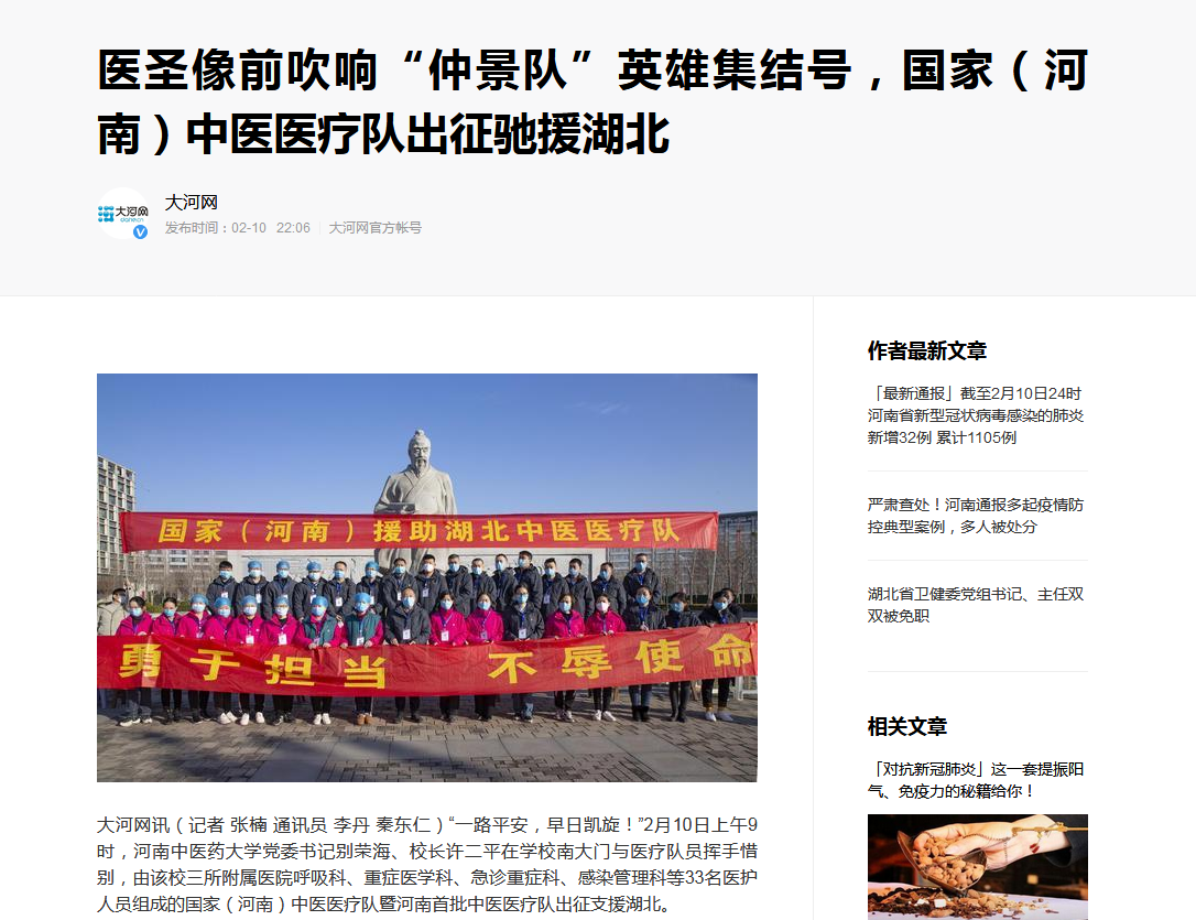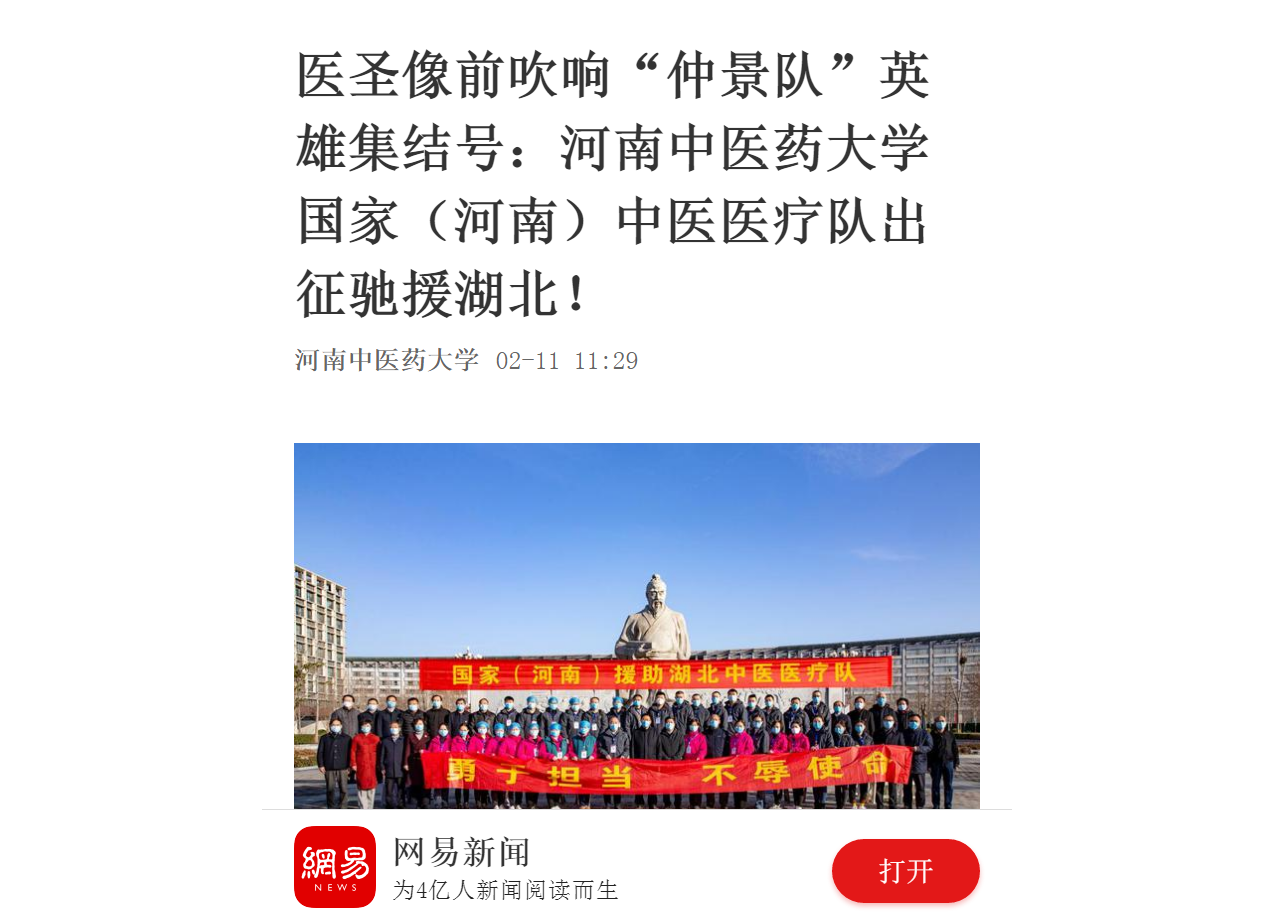 编者按:2020年2月10日-11日,大河网、网易新闻对leyu·乐鱼(中国)体育官方网站援助武汉国家(河南)中医医疗队启程进行报道。现将网易新闻全文刊发如下: