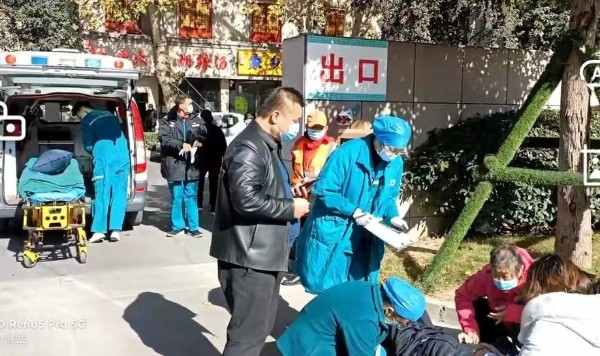 赶到现场后,薛磊立即查看老人的生命体征,发现老人虽还有意识,但不能说话,身体抽搐,情况十分危急。