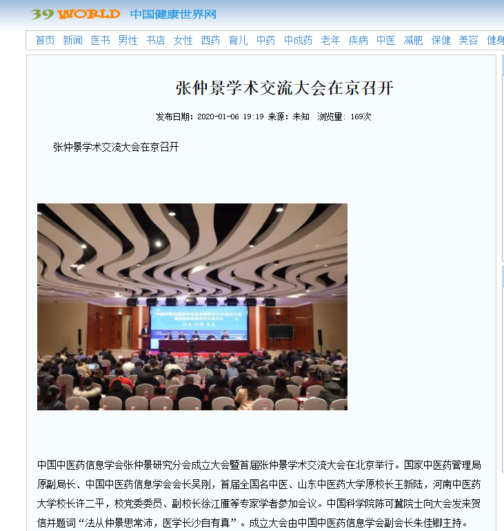 薪火相传中医文化 首届张仲景学术交流大会在京召开