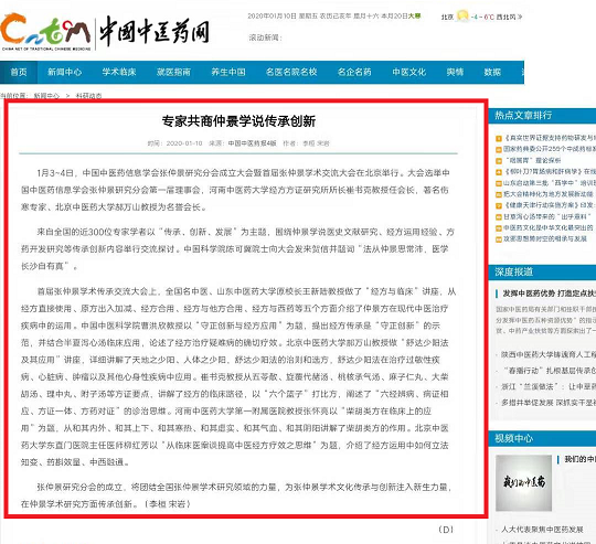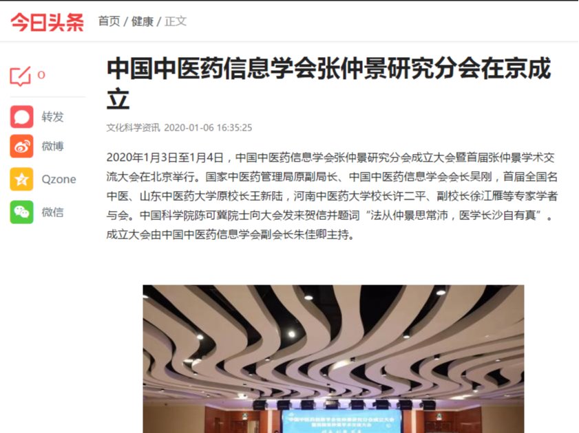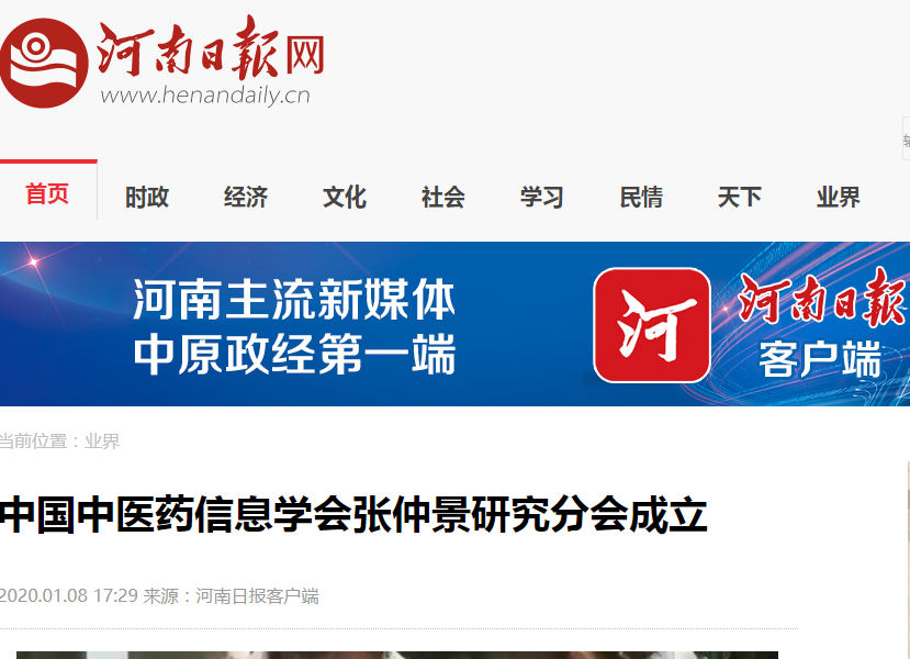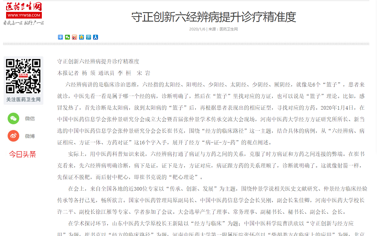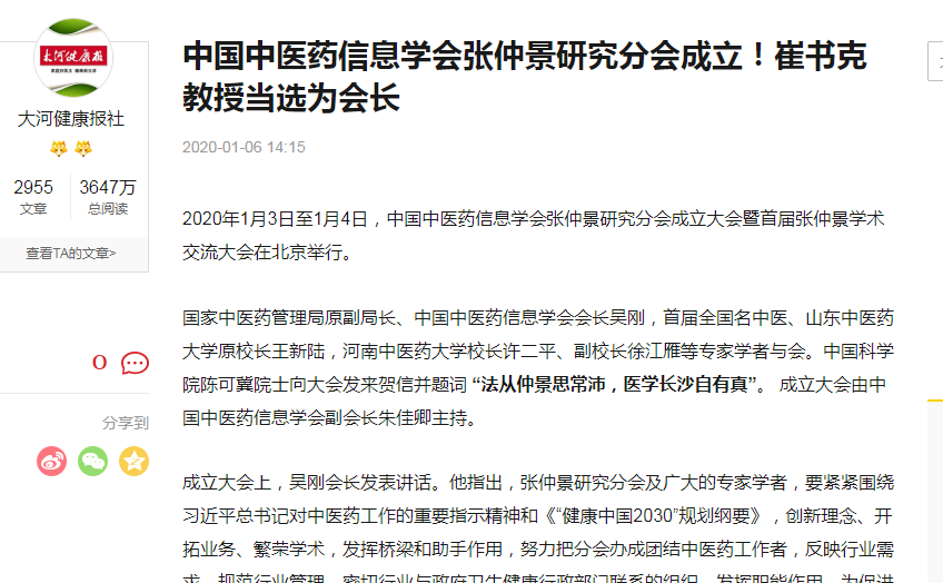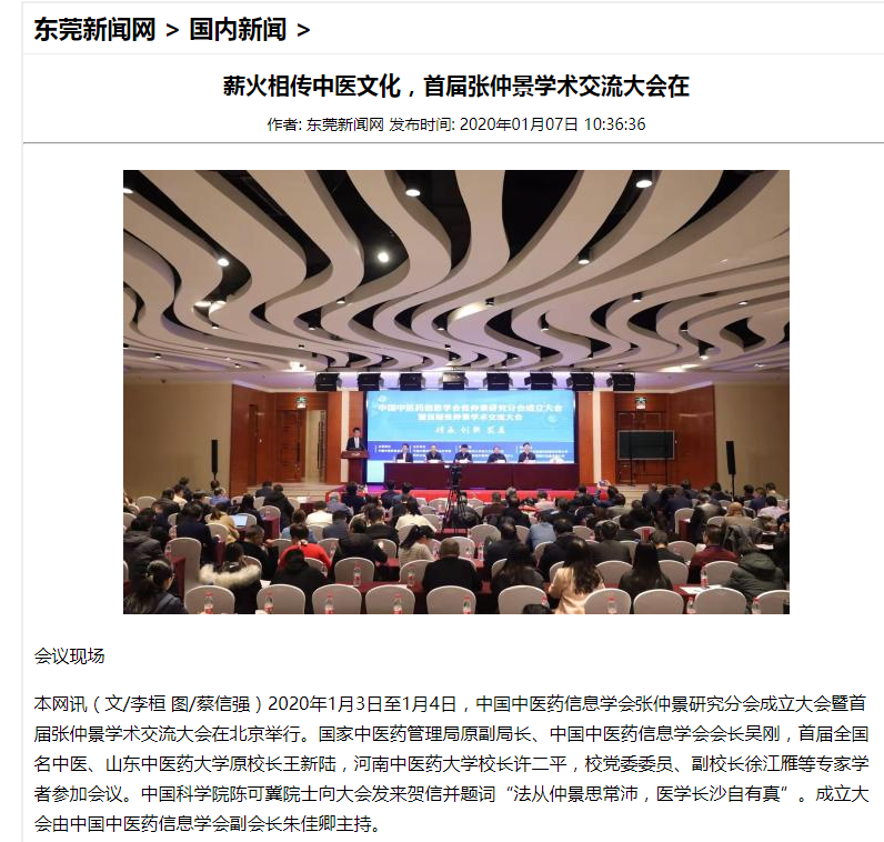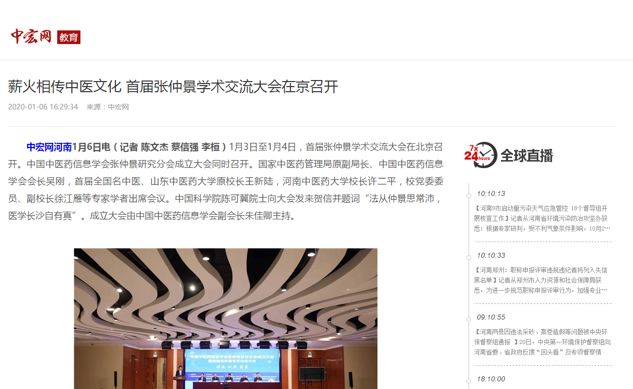 编者按:2020年1月6日-14日,中宏网、中国中医药网、中国健康世界网、河南日报网、河南日报客户端、大河健康报社、医药卫生报、医药卫生网、澎湃新闻、东莞新闻网、今日头条等媒体对leyu·乐鱼(中国)体育官方网站崔书克教授当选张仲景研究分会会长进行广泛报道。现将中宏网全文刊发如下: