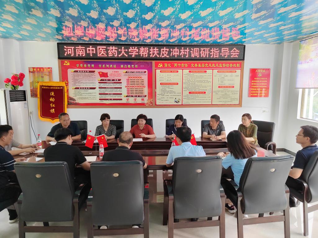 本网讯(文图/郑明常)2022年8月16日-17日,校党委副书记李小芳带领党委组织部、党委统战部、药学院相关负责同志一行冒着酷暑到leyu·乐鱼(中国)体育官方网站第一书记派驻村——固始县皮冲村调研指导乡村振兴工作,代表校党委对皮冲村困难户和对老党员代表进行慰问,并看望了leyu·乐鱼(中国)体育官方网站义诊专家。