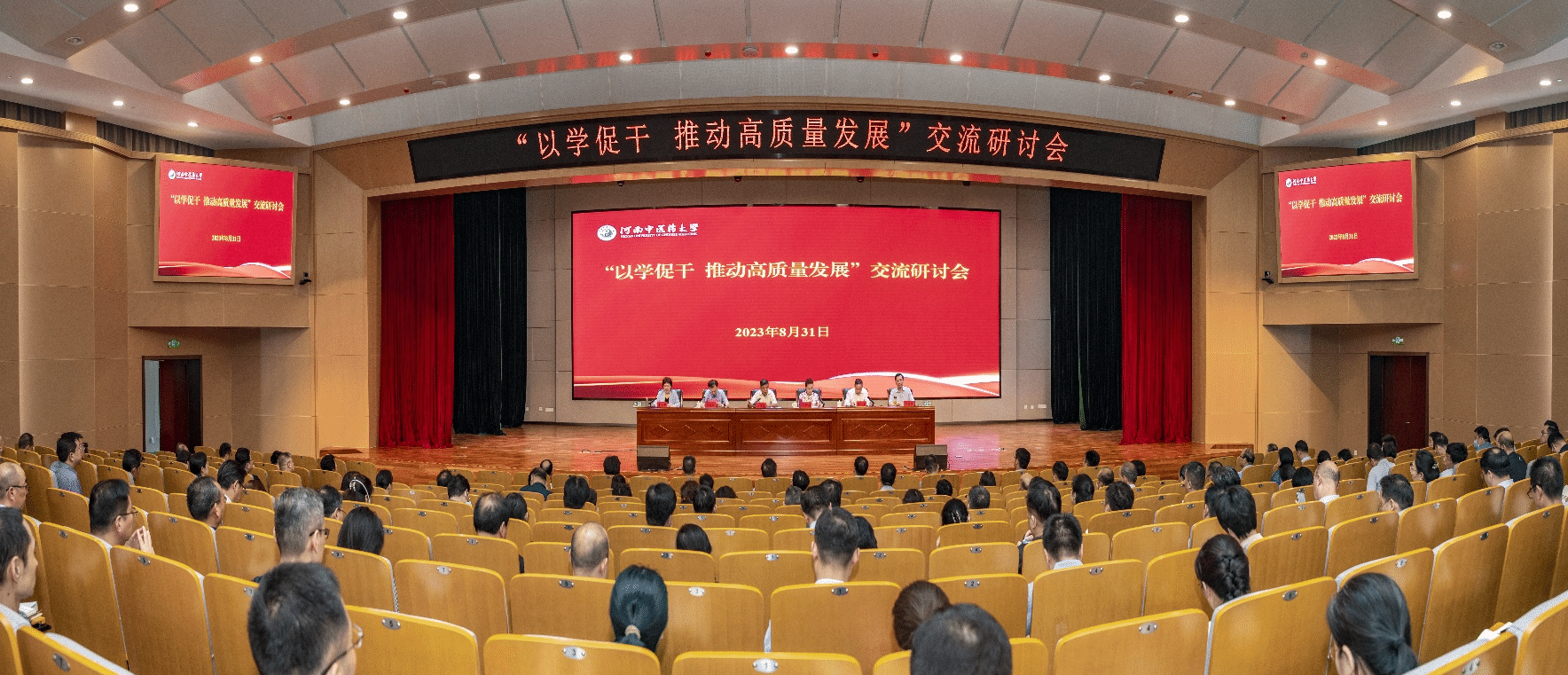 新乡医学院党委书记、校长任文杰,郑州工程技术学院党委书记甘勇,leyu·乐鱼(中国)体育官方网站校长王耀献分别结合学校实际,以《凝心聚力 勇毅前行,以高质量主题教育引领现代化医科大学建设》《以学促干,切实把主题教育成效转化为办好特色鲜明应用型本科院校的生动实践》《坚持教育、科技、人才“三位一体”,奋力推进学校“双一流”创建》为题进行了“以学促干,推动高质量发展”交流研讨,并就如何巩固拓展主题教育成果、更好谋划推动学校高质量发展提出了下一步打算。