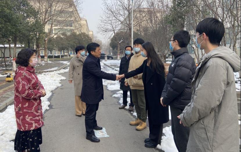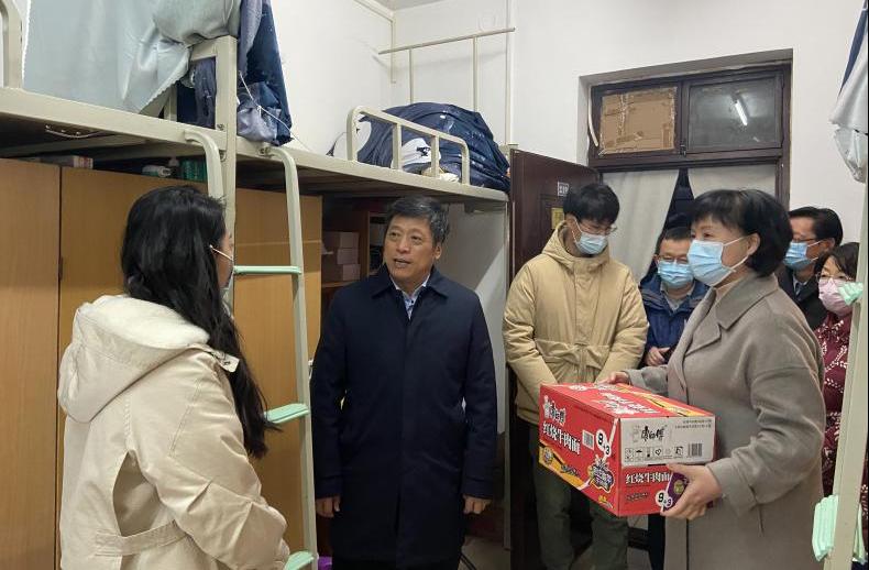 冒着隆冬寒气,踏着初融雪路,许二平一行来到龙子湖校区学生宿舍,走访并慰问了目前留校的学生。每到一处,许二平校长均详细了解同学们寒假留校期间的学习、科研、生活及身心健康状况,对同学们因疫情影响暂时不能回家过年表示深切慰问。许二平细心询问同学们在校期间有无各类困难,并表示学校会努力给同学们创造温馨温暖有爱的“家”氛围,让全体留校同学春节期间同样感受到来自“河中医大家庭”的爱意和幸福。