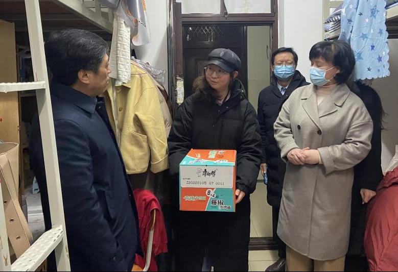 本网讯(文图/秦中朋)金牛辞旧岁,瑞虎踏歌来。为了让留校学生度过一个有温度、有爱意、有暖意的农历小年,2022年1月25日下午,校长许二平深入龙子湖校区学生宿舍看望并慰问了因疫情影响等原因不能返乡的留校学生,并为他们送去学校的关心关爱和春节祝福。校党委委员、副校长田力,校长办公室、研工部和学生资助中心等相关部门负责人陪同参加看望慰问活动。