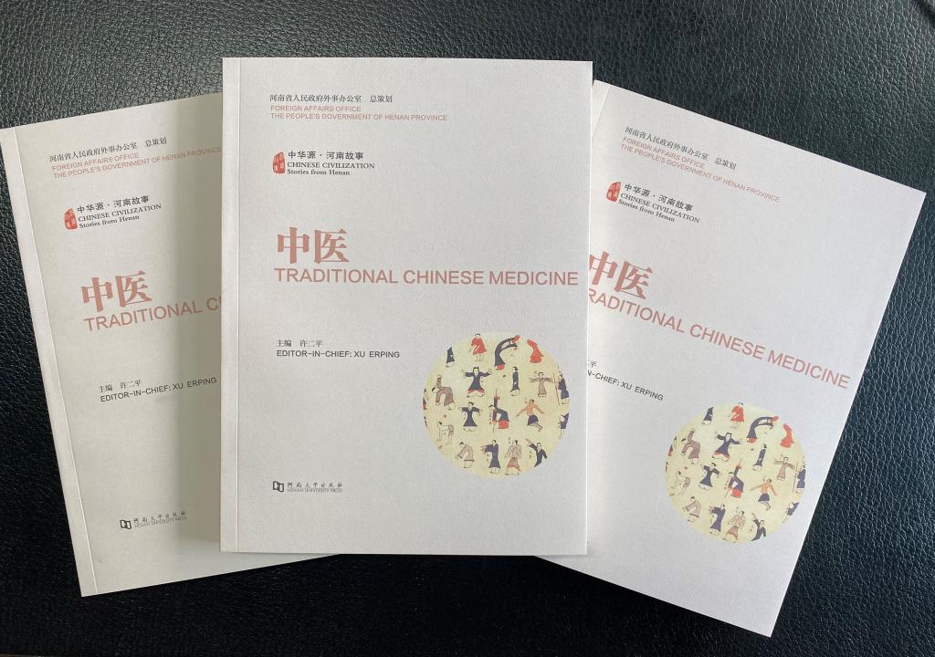 “中华源·河南故事”中外文系列丛书是我省迄今唯一以河南文化元素为主题的中英文双语套书,是对外传播中华文化、提升河南形象的重要载体,是河南推动中原文化“走出去”,提升中华文化国际影响力的一次有益尝试。许二平主编的《中华源·河南故事·中医》是一本介绍中医药特色的中英双语普及读物。书中对历史上著名的河南医家、新时代河南中医名家的故事以及现代中医诊疗技术进行了详细介绍,对河南丰富的中药资源、中医药文化旅游资源以及河南中医药文化国际传播与交流情况进行了详细阐述。