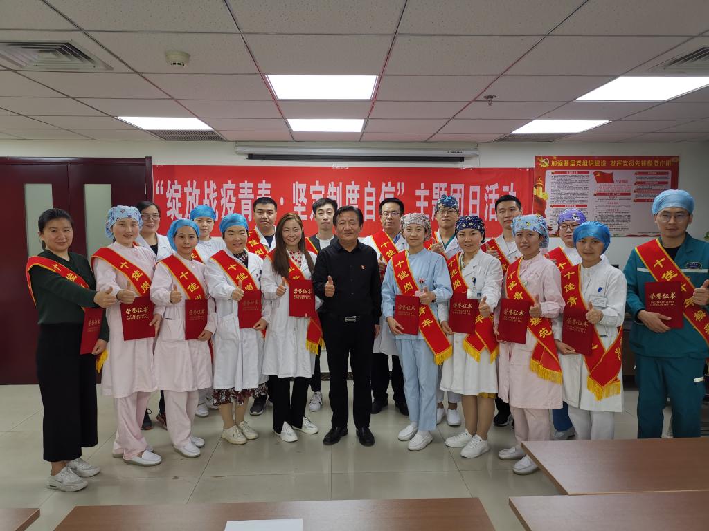 翟剑波指出,长期以来,医院党委高度重视共青团工作,医院3200多名职工,青年职工占比接近60%,特别是在此次疫情防控工作中,90%以上的一线职工都是青年工作者,是医院发展建设当之无愧主力军和中流砥柱。医院“青年突击队”更是荣获了河南省青年团体的最高荣誉——“河南青年五四奖章集体”,这一荣誉既是高度认可,也是对广大青年职工极大鼓励。翟剑波对于广大青年工作者提出了四点希望:一要坚定信念,牢记使命。习近平总书记在十九大报告中指出:“青年兴则国家兴,青年强则国家强”,广大青年要时刻牢记党的宗旨,时刻牢记青年担负的历史责任,牢固树立正确的世界观、人生观、价值观,围绕学校和医院的中心工作,围绕学校事业转型发展,为了医院提质增效,为了河南中医药事业发展,挥洒汗水,贡献才智。二要勤奋学习,敏于求知。总书记说“学习是人类进步的阶梯,要树立终身学习的理念”,广大青年要牢固树立全面学习、终身学习的观念,以时不我待的责任感,只争朝夕的紧迫感,加强学习,提升素质。要学习专业技术知识、更要学习政治理论知识,学无止境。要在工作实践中增长才干,在服务职工、群众生命安全和身体健康中练就本领。三要勇担使命、奋发作为。广大青年职工要弘扬战“疫”精神,要进一步完善、充实医院援助武汉医疗队的“四种精神”。当前,疫情防控工作取得坚实性效果,一附院当前还承担着国外回来人员的筛查、隔离、检验,救治的艰巨任务,医院的隔离病房仍然有一批医护人员在里边战斗,他们仍然在弘扬着“不畏生死的奉献精神、勇往直前的斗争精神、医者仁心的职业精神、众志成城的团结精神”。因此年青一代要“敢”字当头,敢于勇往直前,敢于跨入新领域,到基层去、到条件艰苦的地方去,到职工群众最需要的地方去,找准工作的切入点、着力点和落脚点,在工作岗位上贡献青春力量。四要提升能力,争做先锋。大家要努力践行一附院厚德精业,继承创新的院训,掌握科学文化知识和专业技能,努力提高人文素养,成为勤于学习、勇于担当、甘于奉献的栋梁之材,早日成为名医名师,成为医疗技术能手,成为医疗护理标兵,成为学生尊敬的老师。