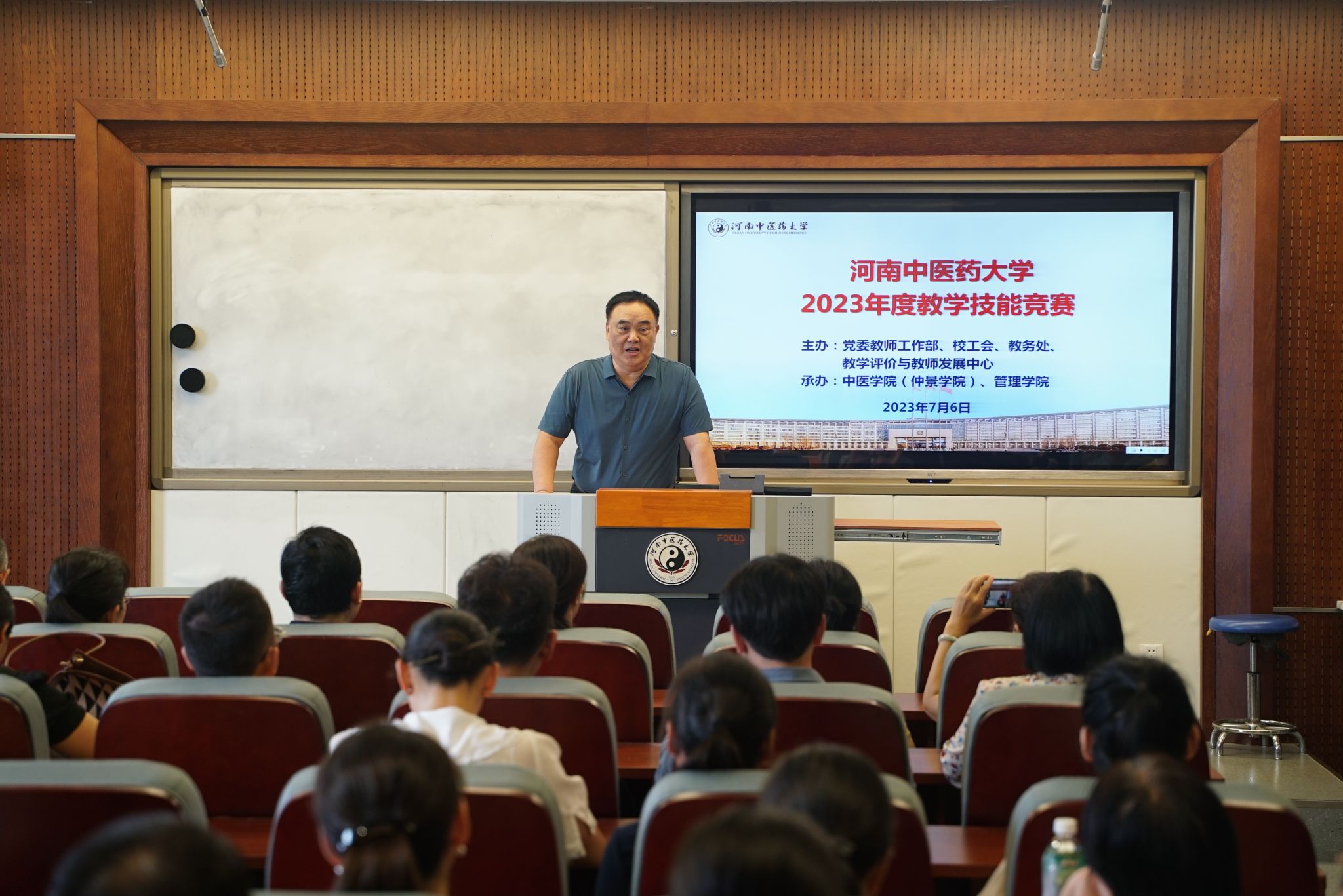 本网讯(文/刘欲晓 王少毅 图/杨静静 张蓝煕)为深入落实《中共中央 国务院关于全面深化新时代教师队伍建设改革的意见》精神,落实“以教育之强夯实国家富强之基”要求,进一步提升leyu·乐鱼(中国)体育官方网站青年教师的思想政治素质、教学能力和业务水平,经过前期各项精心筹备,leyu·乐鱼(中国)体育官方网站于2023年7月6日在龙子湖校区综合实验楼举办2023年教学技能竞赛。校党委副书记、工会主席张小平出席开幕式并讲话。党委教师工作部、教务处、教学评价与教师发展中心部门负责人、中医学院(仲景书院)、管理学院领导班子、各参赛单位工会主席、各院部观摩教师及校工会工作人员等参加开幕式。仪式由校工会女工委副主任常瑞主持,校工会副主席刘延江宣读竞赛方案。