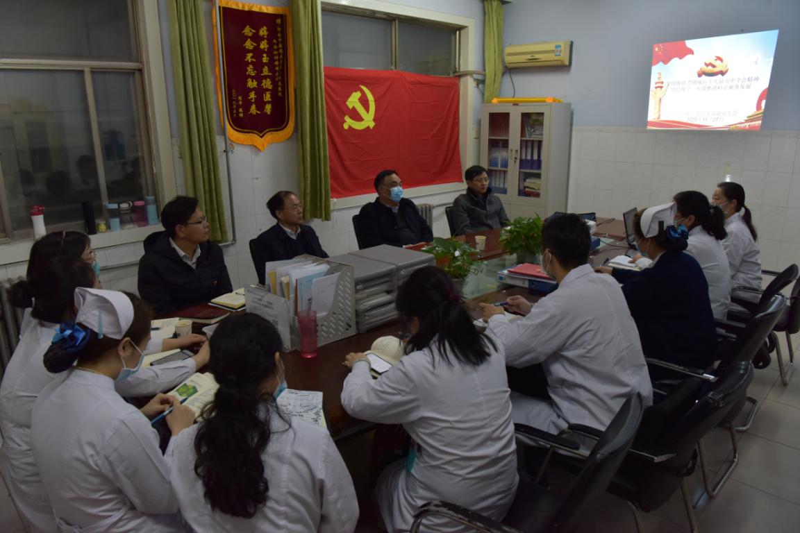 调研结束后,张小平到所联系的内分泌科党支部与全体党员共同参加了“学以致用,学习贯彻十九届五中全会精神;用以致学,推动科室高质量发展”主题党日活动。在学习讨论环节,张小平与支部党员围绕科室发展、基层党支部建设、严格落实“三会一课”等问题进行深入交流,强调要切实加强基层党组织建设,发挥党支部战斗堡垒作用和党员先锋模范作用,维护好人民群众生命健康。张小平还与所联系的青年教师祝珍珍开展了谈心谈话,勉励他多学习多实践,不断提高工作本领,引领大学生成长成才。