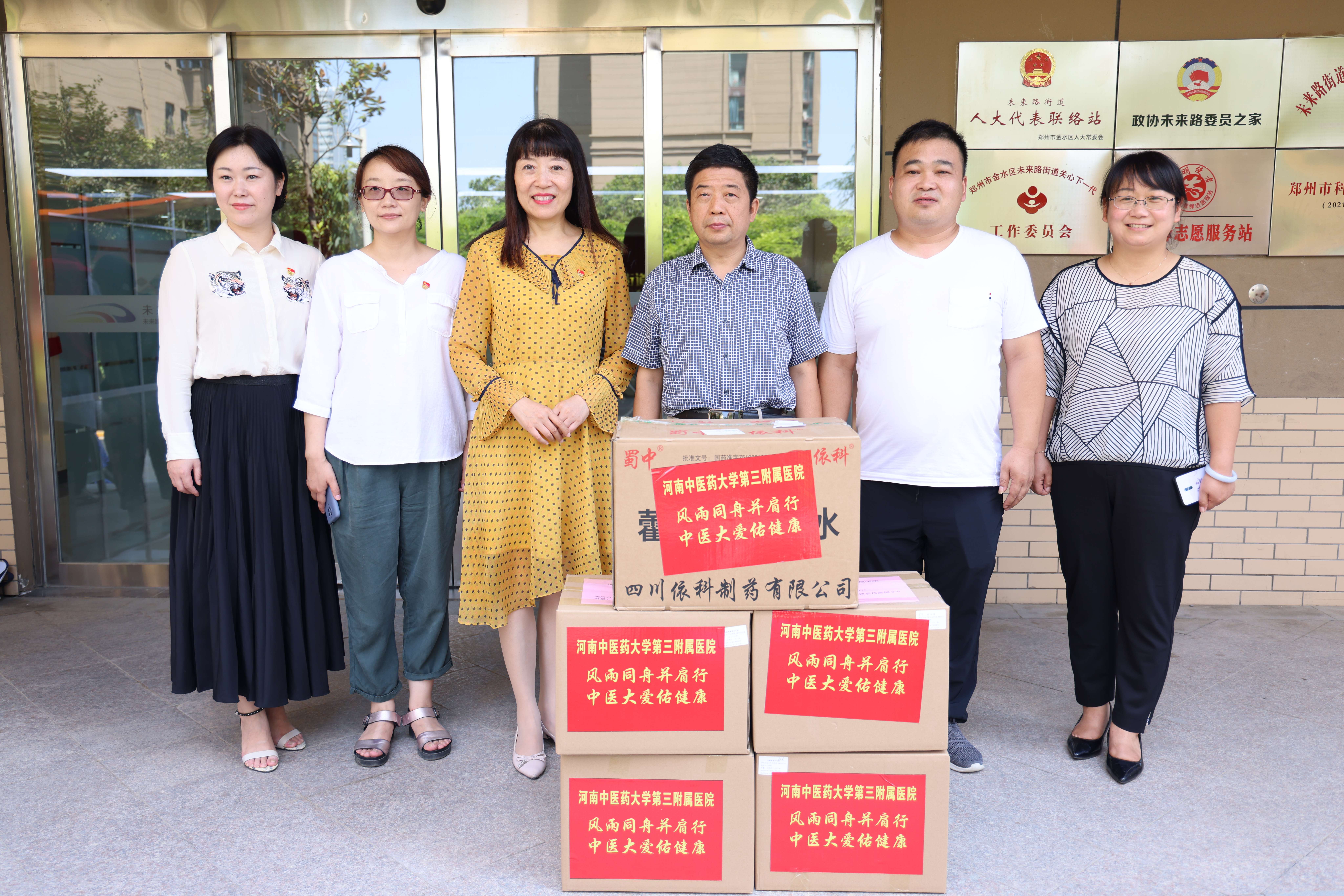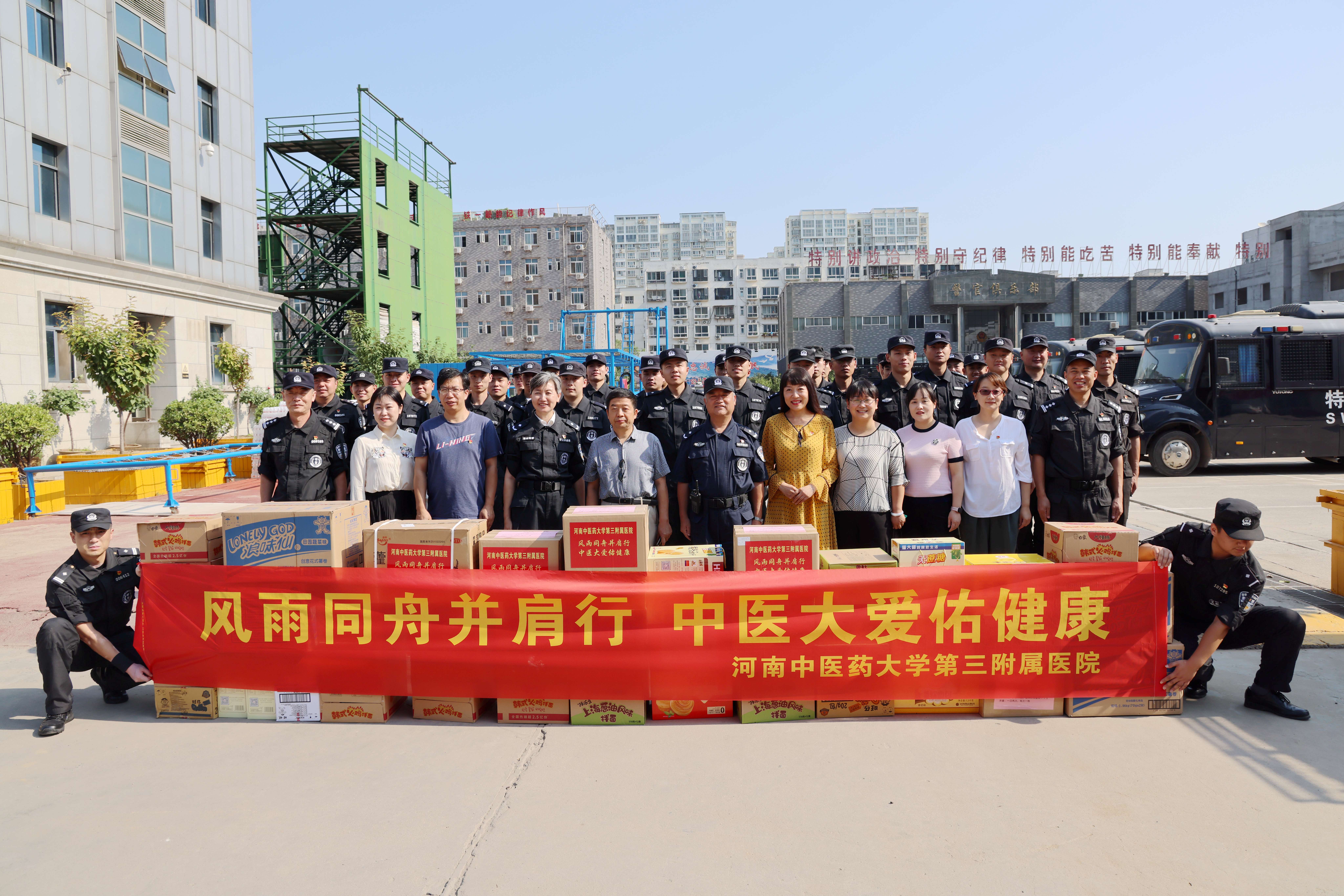 随后,院领导为特警支队、金水民兵、社区工作人员送上了我院国医大师张磊、河南省名中医孙玉信的防疫颗粒剂及慰问品。
