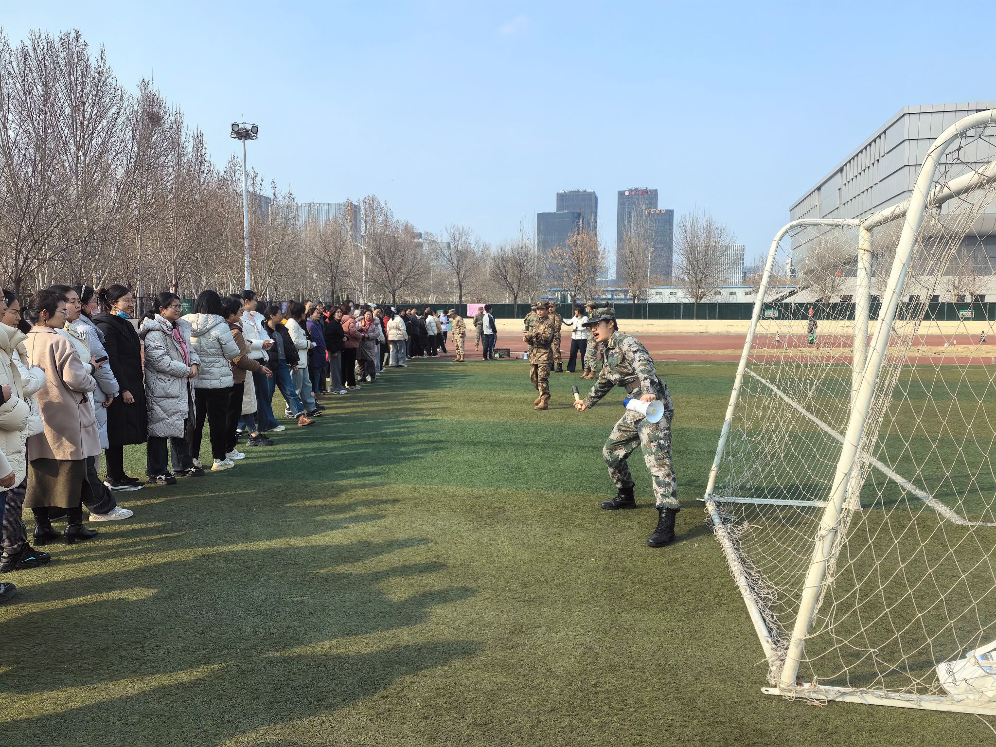 强身健体,焕发活力。“人生幸福快乐,强身健体十分重要。”习近平总书记曾用短短14个字,简明扼要地揭示了强身健体的重要性。3月6日下午微风习习、阳光和煦,绿茵场上人头攒动,在校女工委的有序组织下,“提升・翩翩爱武装”女职工体能素质拓展活动在龙子湖校区东操场活力开启。老师们在学习基本军事知识、提升国防素养的同时,也培养了团结合作的精神、锻炼了身体,深刻落实了习近平总书记对“一个健全的人“的要求,即“既要有丰富的知识和文化内涵,还要有健康的精神和强健的身体”。有趣、有料的项目设置、难得一见的军事装备模型、动人心魄的竞技氛围让老师们不禁感慨:“本次活动不仅‘出片’更‘出彩’”!