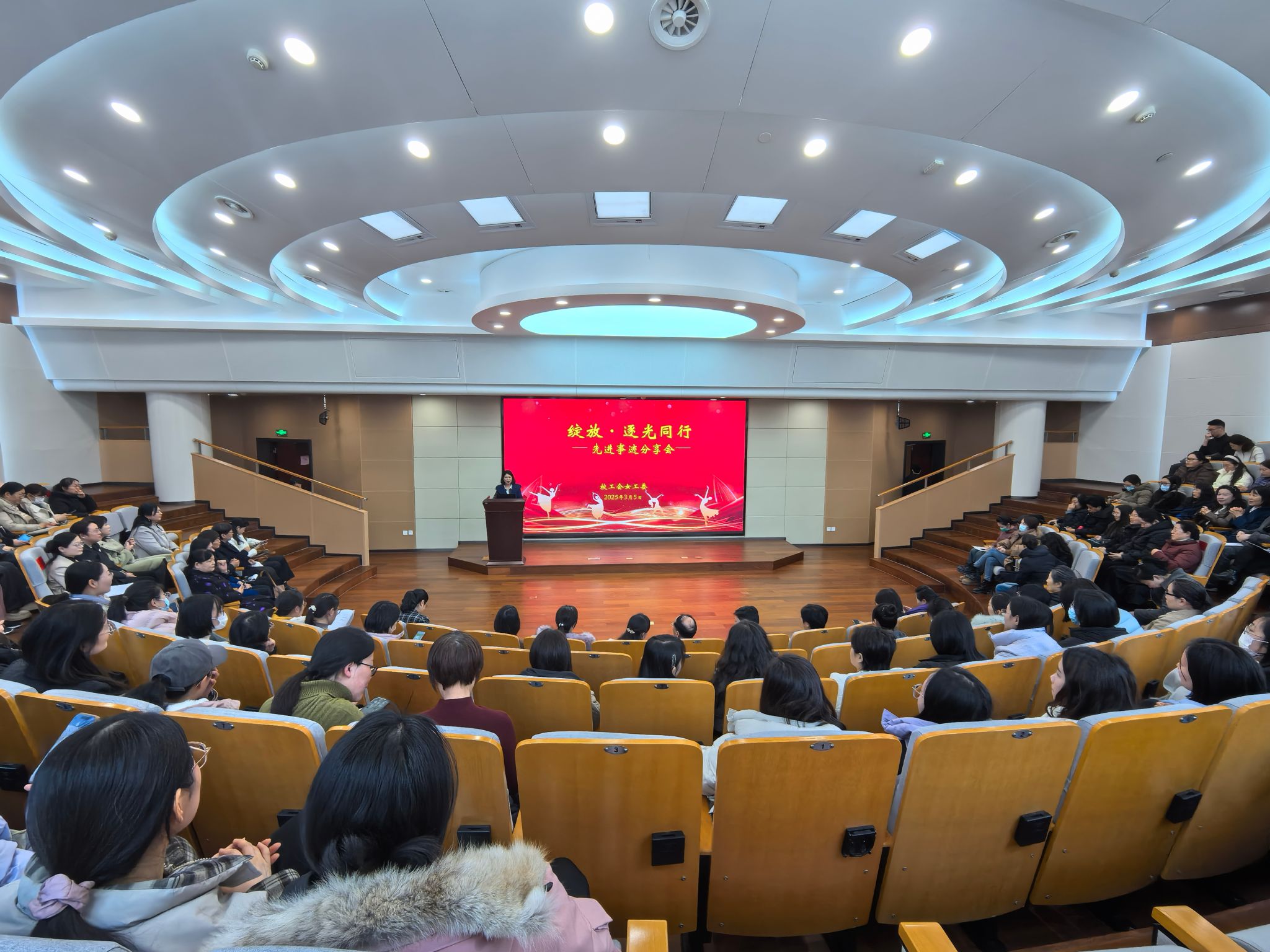 逐光同行,踵事增华。巾帼劳模有着“劳动光荣、知识崇高、人才宝贵、创造伟大”的时代特征,是全校女教职工奋进新征程的风向标。为充分发挥巾帼劳模的示范引领作用,营造向劳模先进学习的良好氛围,3月5日下午,校女工委在俊学楼A114报告厅举办了 “绽放・逐光同行” 先进事迹分享会,活动现场气氛热烈。来自教学、科研、医疗、行政管理等不同岗位的优秀女教职工代表齐聚一堂,她们用切身经历讲述了各自在教育战线上践行教育家精神、在救死扶伤中弘扬“大医精诚”医德医风的感人事迹,充分展现了河中医女教职工的时代精神和巾帼风采,生动诠释了职业女性的伟大品格,激励着每一位女教职工在各自岗位上拼搏奋进,绽放光彩。