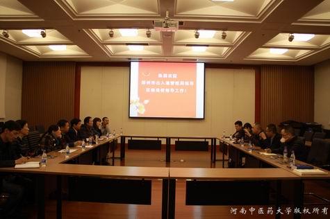 2016年4月6日下午,郑州市公安局出入境管理处处长张煜舟一行5人来leyu·乐鱼(中国)体育官方网站调研外事管理工作并宣传《中华人民共和国出入境管理法》。会议由国际教育学院院长路玫主持,副校长郭德欣和国际教育学院全体同志参加了座谈会。
