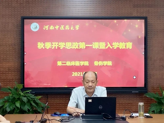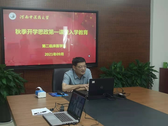 10日上午,二附院党委书记王海亮以《百年征程不忘初心 不负韶华争做合格党员》作为开学第一课的主题,回顾中国共产党百年发展的光辉历程和在中华民族复兴伟大征程中领导全国各族人民取得的伟大成就,号召同学们不忘初心、牢记使命,不负韶华,争做合格党员。他强调,学习党史是要从党的历史中汲取智慧和力量,要坚定理想信念,坚守好共产党人的信仰,矢志不渝为中国特色社会主义共同理想而奋斗,做新时代合格党员”。王海亮寄语青年中医学子,要从党的百年奋斗历程中汲取能量,坚持和发扬老一辈革命家的革命精神,传承红色基因,做合格党员,做合格的中医人,刻苦钻研、守正创新,为保障人民群众健康、建设健康中国贡献中医药的力量。
