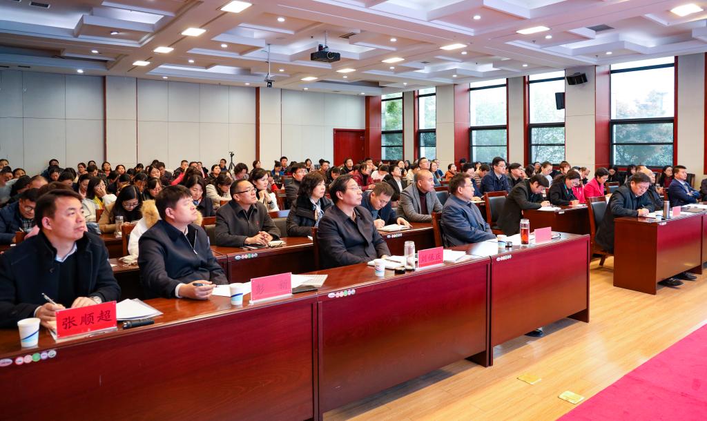本网讯(文/陈雨昕 图/秦东仁)为深入学习贯彻全国和全省高校思想政治工作会议、全国全省教育大会精神,落实立德树人根本任务,充分发挥课堂教学育人的主渠道、主阵地作用,进一步推动leyu·乐鱼(中国)体育官方网站“课程思政”教育教学改革,2019年11月26日下午,leyu·乐鱼(中国)体育官方网站在图书馆第二报告厅举办了2019年专业课“课程思政”教学观摩活动。省教育厅高教处处长张水潮、校党委书记别荣海、副校长冯卫生出席活动,党委办公室、党委宣传部、教务处、教学评价与教师发展中心等相关职能部门负责人、各院部教学副院长及教师代表共计100余人参加了此次观摩活动。活动由教学评价与教师发展中心主任呼海涛主持。