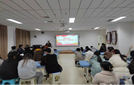 本网讯(文/张瑞雪 图/李莹)为深入贯彻党的十九届六中全会精神,扎实高效推进能力作风建设年活动,2022年2月22日,康复医学院党委书记张运克在实训楼1107为学生上开学思政第一课,此次授课采用线上线下相结合的形式,由辅导员张瑞雪老师主持,星光研习社社员、2021级全体学生参与听课。