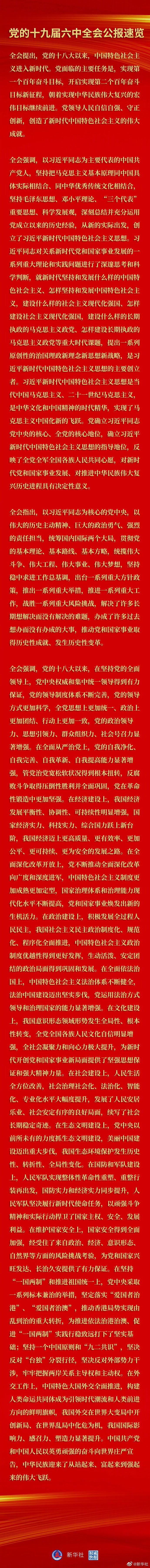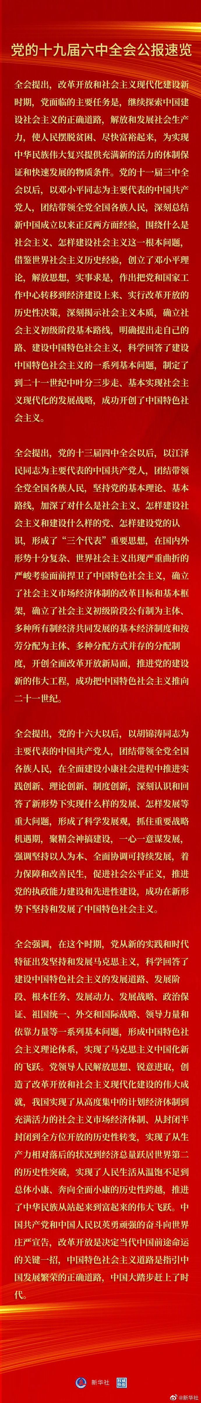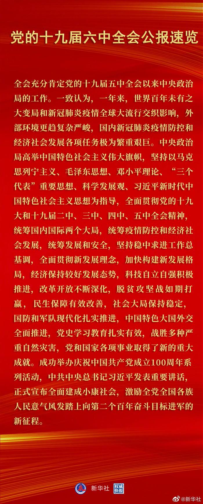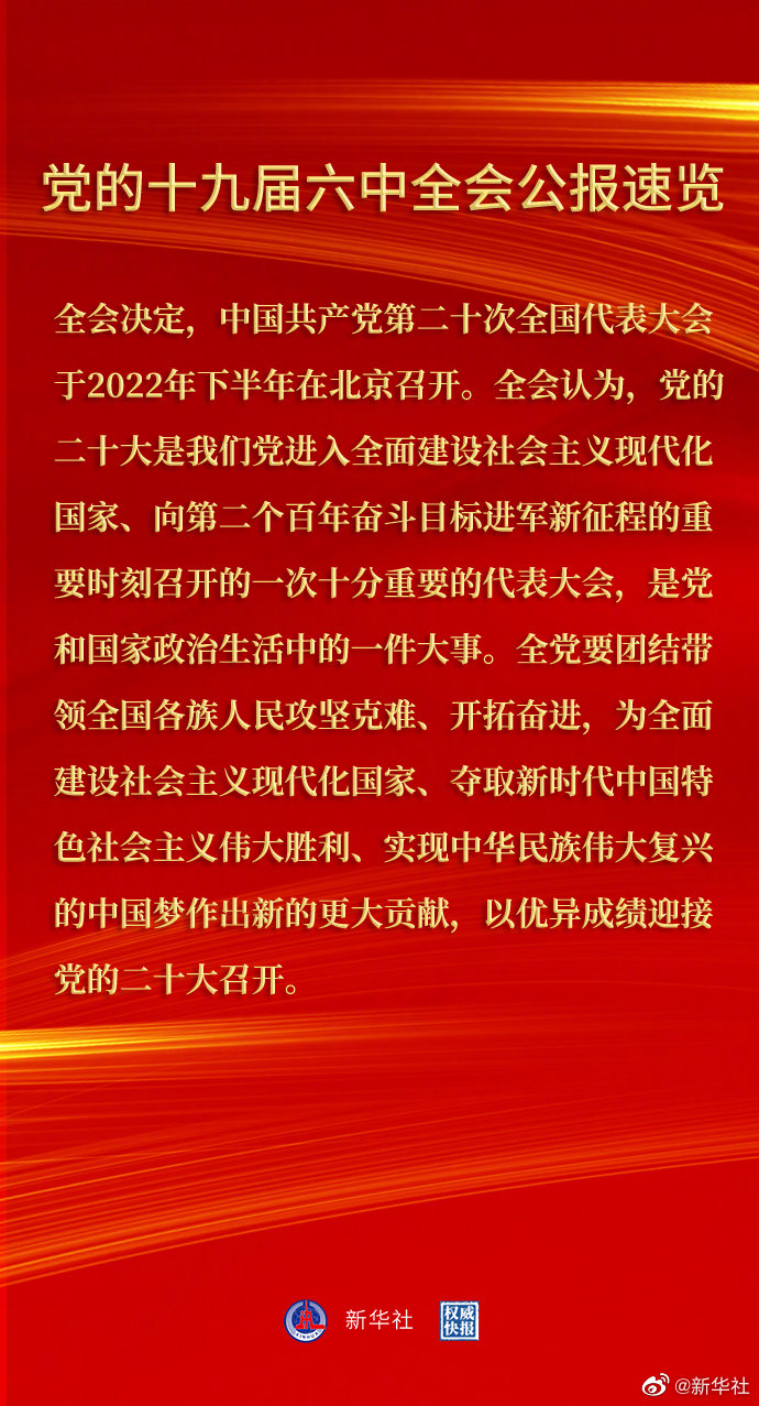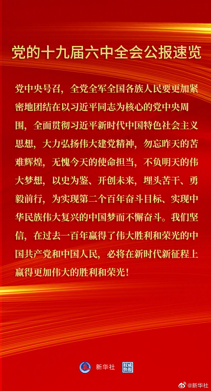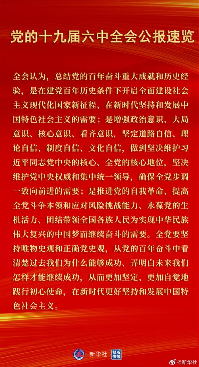 聚焦十九届六中全会丨党的十九届六中全会公报速览