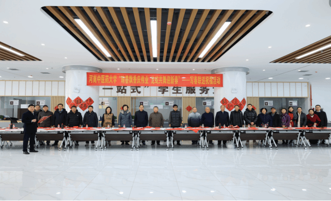 师生围在一旁,满怀期待地注视着书法老师的创作过程,不时爆发出阵阵赞叹与掌声。“春风荡漾河山艳,社会和谐日月新”“古传神农尝百草,今研良药济群生”“锦绣前程行伟业,春风得意启新程”……一幅幅苍劲有力、寓意深远的对联在老师们的笔下应运而生,传递着浓浓的年味,抒发着大家对中医药事业发展、对祖国繁荣昌盛的美好愿景。