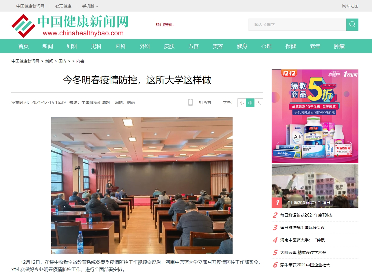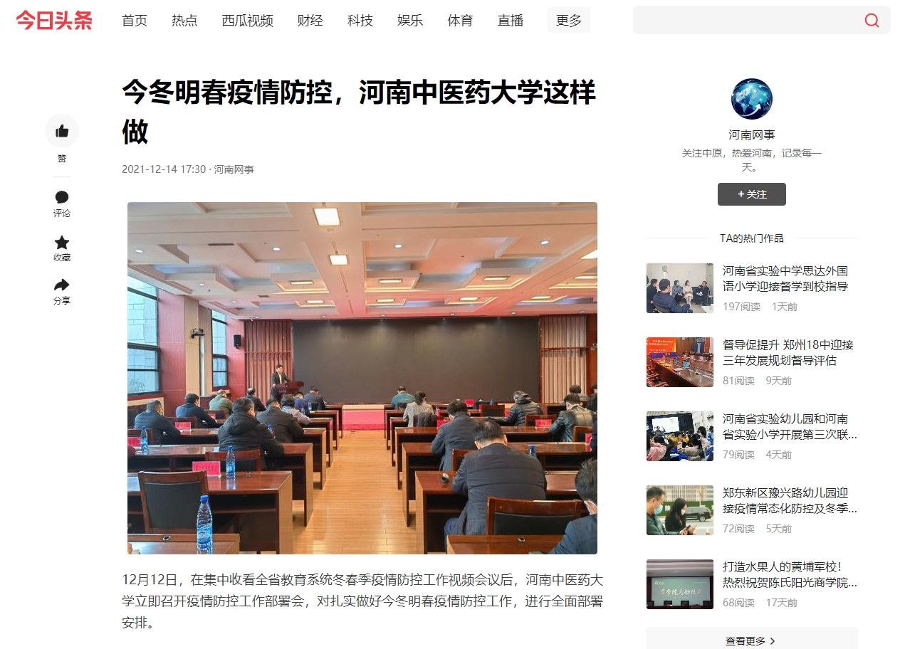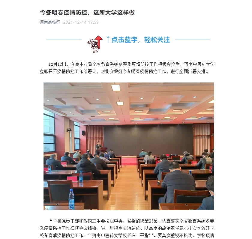 编者按:2021年12月14日-15日,河南日报网、中国健康新闻网、中华高校网、中新资讯网、河南高校资讯网、河南经济论坛、河南高校行、中国之窗、焦点中国网、中国科技日报、财经中国、中国城市文化网、中国快报在线、中国科技在线网、中国都市新闻网、网易新闻、今日头条、百度百家号、搜狐号、腾讯企鹅号等多家媒体对leyu·乐鱼(中国)体育官方网站召开疫情防控工作部署会进行报道。