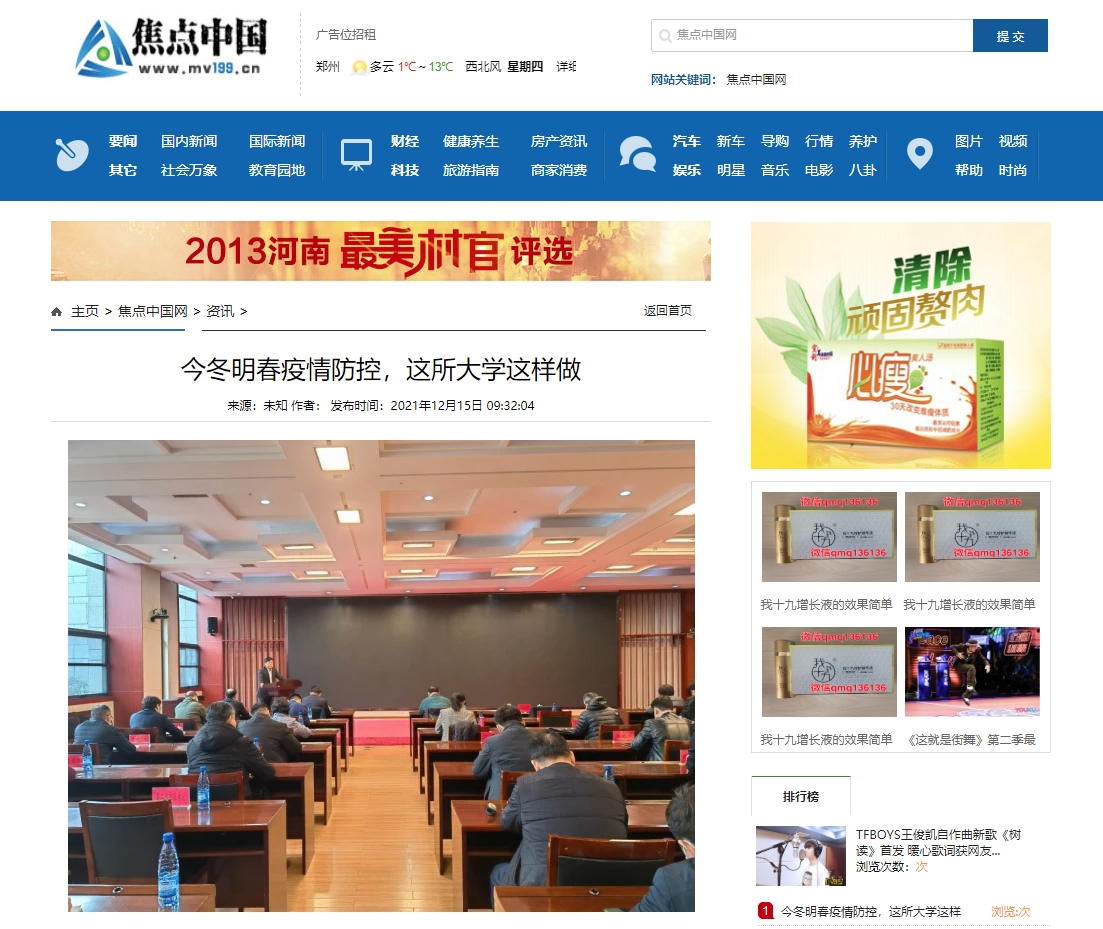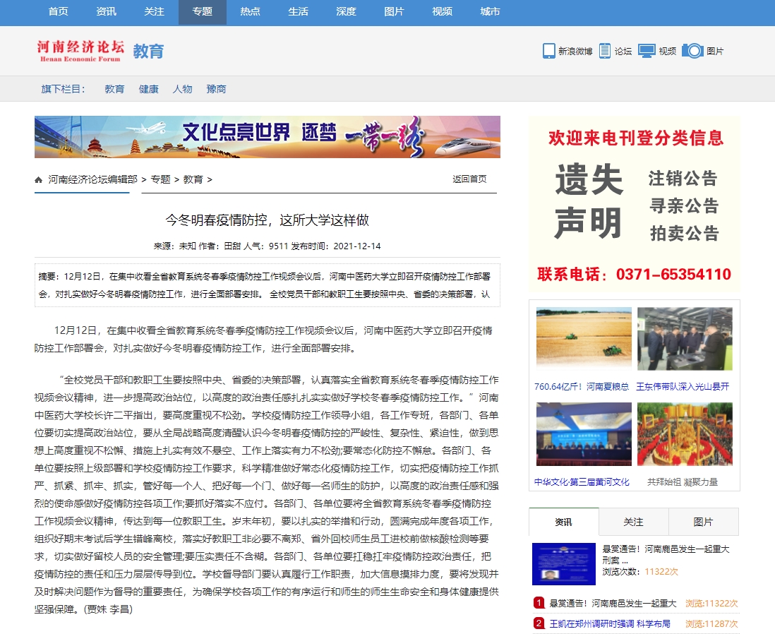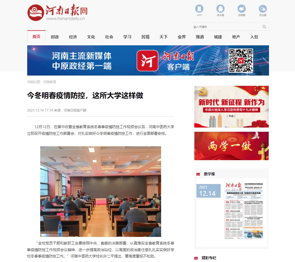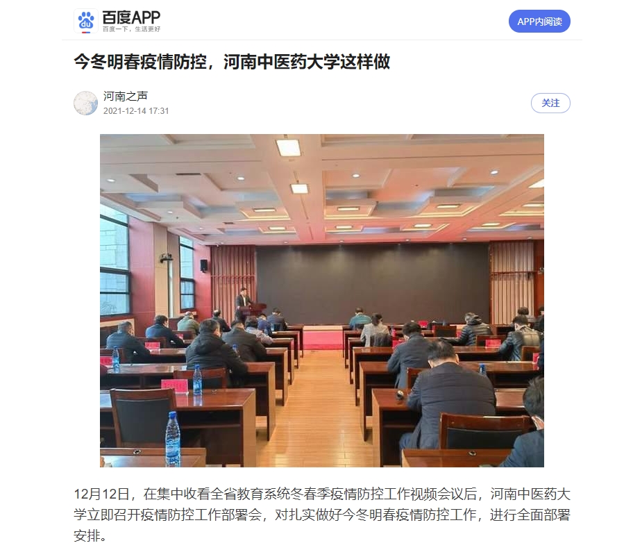 编者按:2021年12月14日-15日,河南日报网、中国健康新闻网、中华高校网、中新资讯网、河南高校资讯网、河南经济论坛、河南高校行、中国之窗、焦点中国网、中国科技日报、财经中国、中国城市文化网、中国快报在线、中国科技在线网、中国都市新闻网、网易新闻、今日头条、百度百家号、搜狐号、腾讯企鹅号等多家媒体对leyu·乐鱼(中国)体育官方网站召开疫情防控工作部署会进行报道。