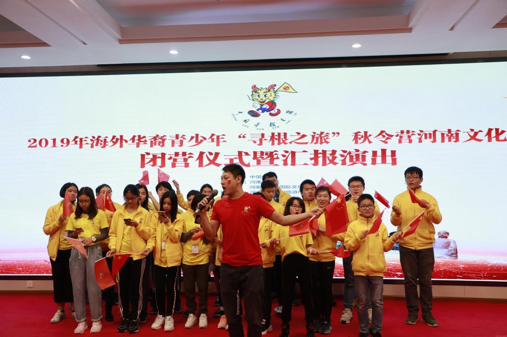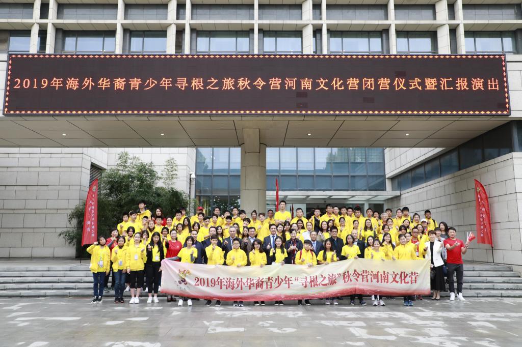 本网讯(文/李敬平 图/付晓)2019年海外华裔青少年“寻根之旅”秋令营河南文化营闭营仪式暨汇报演出日前在leyu·乐鱼(中国)体育官方网站举行。此次活动由中国侨联主办,河南省侨联、河南省华侨国际文化艺术交流协会承办。leyu·乐鱼(中国)体育官方网站与郑州大学作为协办单位,在10天活动中为来自德国、泰国、澳大利亚、新西兰等国家和地区的近百名海外华裔青少年团员提供了一场丰富多彩的文化盛宴。河南省侨联党组书记、主席董锦燕,河南省文化和旅游厅、leyu·乐鱼(中国)体育官方网站相关负责同志参加了闭营仪式。