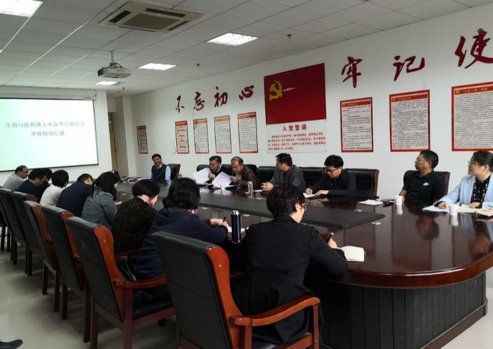 会上,药学院副院长崔瑛从生物与医药专业学位(博士、硕士)的方向领域、人员组成、申报条件,以及申报材料的准备情况、现有条件情况、目前存在的问题、前期专家评审意见等方面进行了汇报。药学院领导、相关专家对申报材料进行讨论,提出了意见建议。