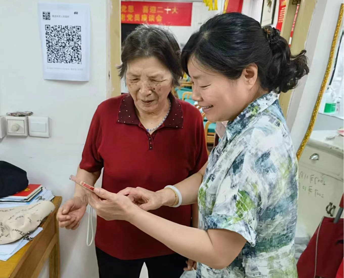 原来,在近期社区为南北家属院居民加装燃气安全装置及更好金属软管工作的过程中,一附院离退休党总支、离退休职工工作部考虑老年人线上缴费容易遇到困难,部门人员全力协助离退休职工和家属院居民开展线上缴费及燃气安全宣传工作。