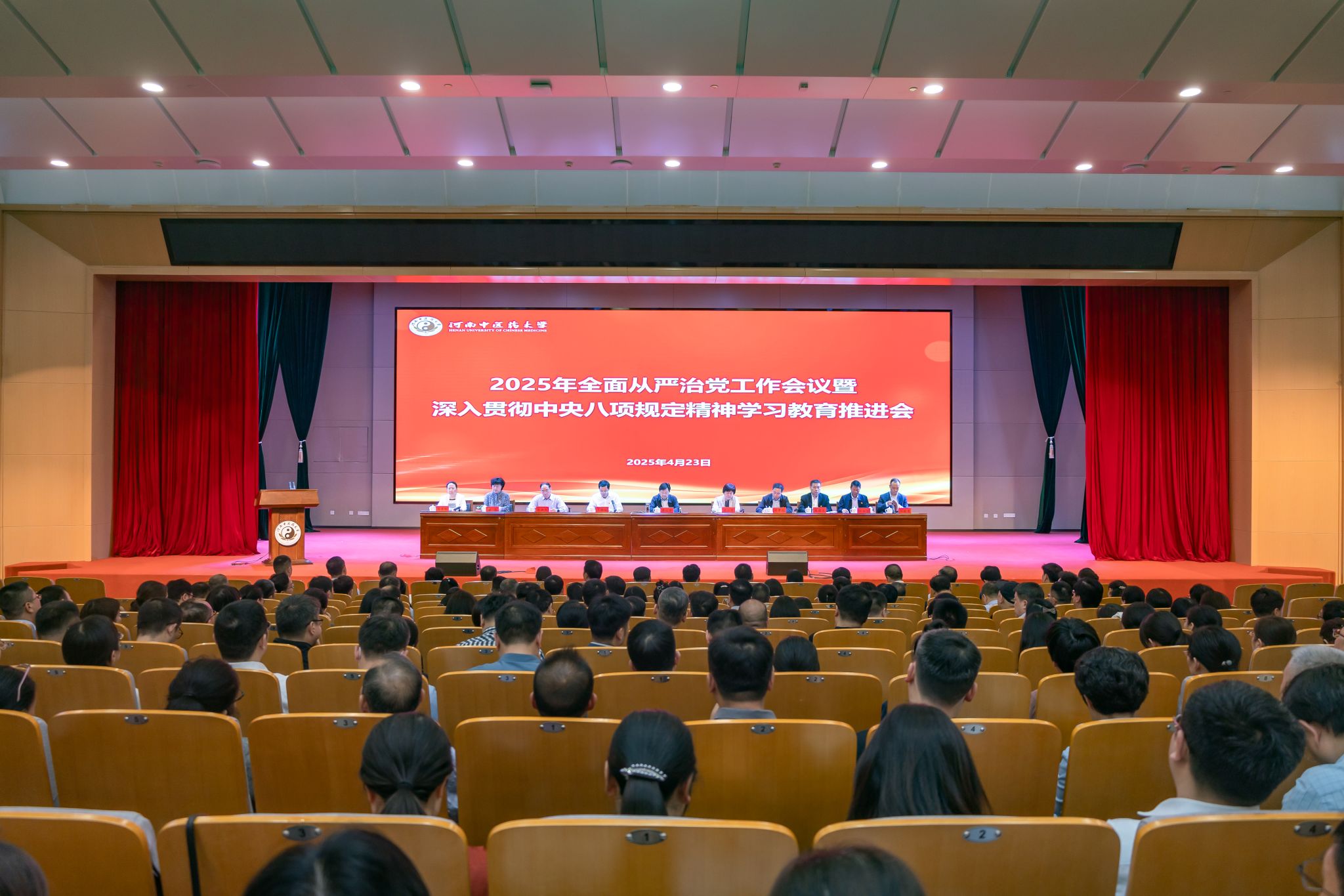 本网讯(文/赵会杰 图/吴晋一)2025年4月23日,leyu·乐鱼(中国)体育官方网站召开2025年全面从严治党工作会议暨深入贯彻中央八项规定精神学习教育推进会。省纪委常委、一级巡视员李成宽,省纪委监委第七监督检查室主任刘中元,全体在郑校领导出席会议。党委副书记、校长王耀献主持会议。