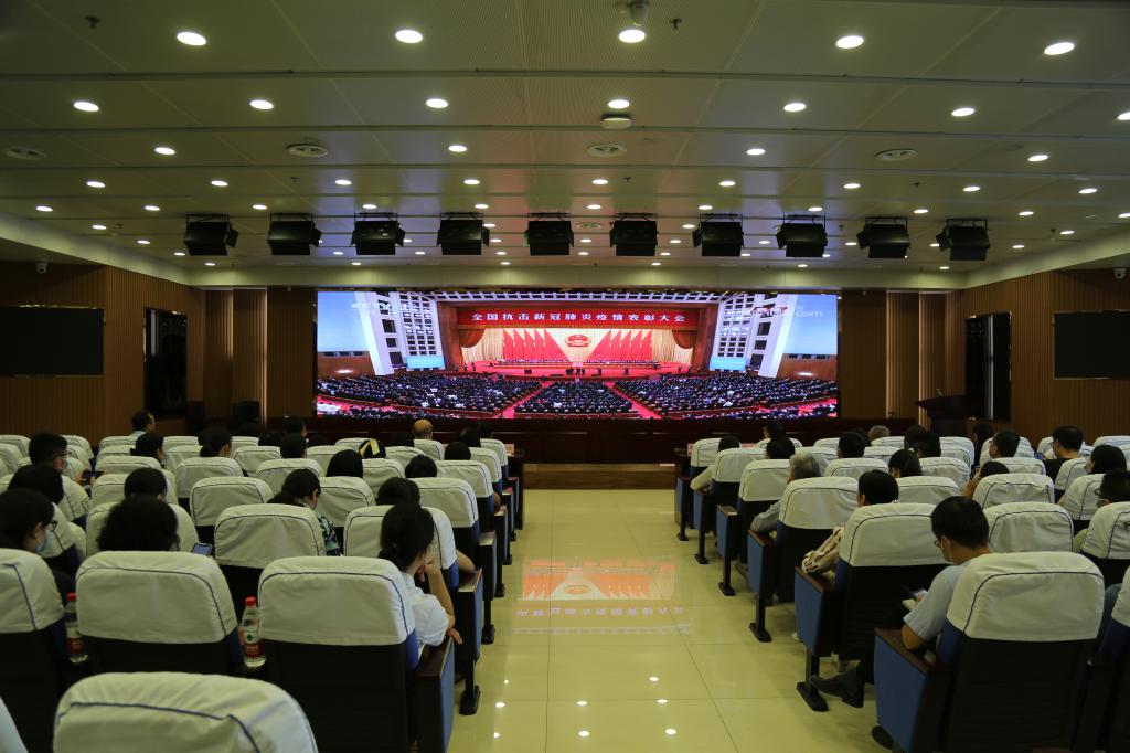 本网讯(文/赵会杰 图/秦东仁等)弘扬抗疫精神,牢记初心使命。2020年9月8日上午,全国抗击新冠肺炎疫情表彰大会在北京人民大会堂隆重举行,leyu·乐鱼(中国)体育官方网站组织广大师生收看大会直播。