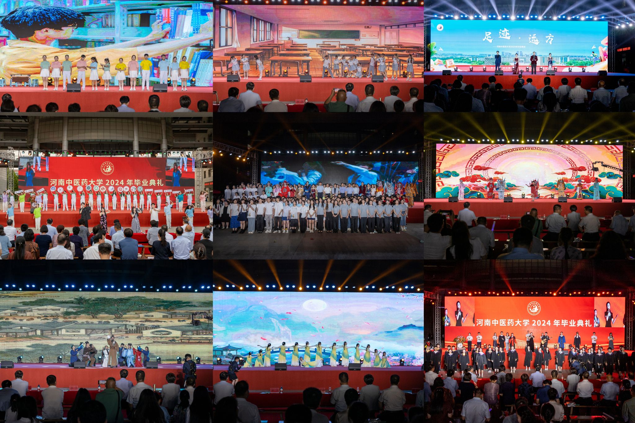 情景朗诵《遇见你》、民舞《平湖秋月》、国粹串烧《那些年》,热情洋溢地再现了同学们与母校的初次相遇,彰显了学校丰厚的文化底蕴,勾起大家美好的青葱记忆;青春校园《小美满》、青春奋斗说《追寻》、音舞雅韵《又在别离时》,表达了同学们激情阳光的拼搏精神,呈现了河中医学子不懈奋斗的追梦旅程,引起大家的强烈共鸣和深深思考;舞台剧《对话医圣张仲景》、歌曲《你在终点等我》、毕业祝福《最美的期待》,再现了大家求学之路中的付出与努力,展现了河中医学子的远大抱负与时代担当,唤起即将离别的不舍与留恋……