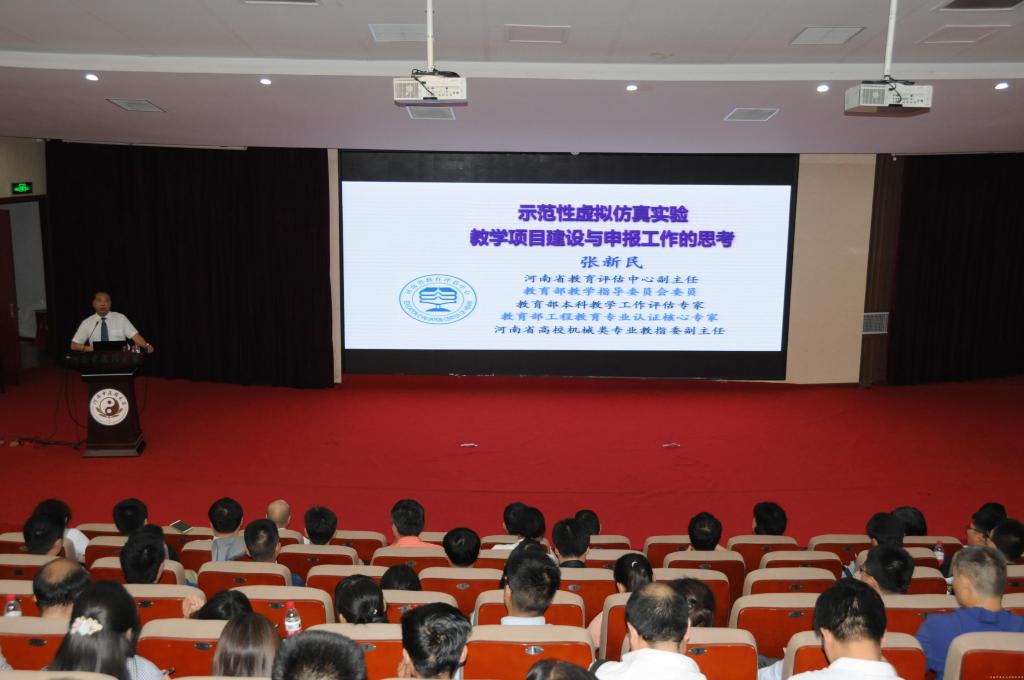 2018年5月8日下午,河南省虚拟仿真实验教学项目培训会在leyu·乐鱼(中国)体育官方网站顺利召开。省教育厅高教处副处长岳德胜、省教育评估中心副主任张新民、副校长田力、教务处处长彭新出席会议,全省54所本科院校200余人参加了培训会。会议由教育厅高教处副处长岳德胜主持。