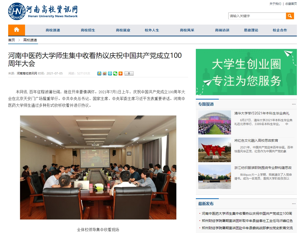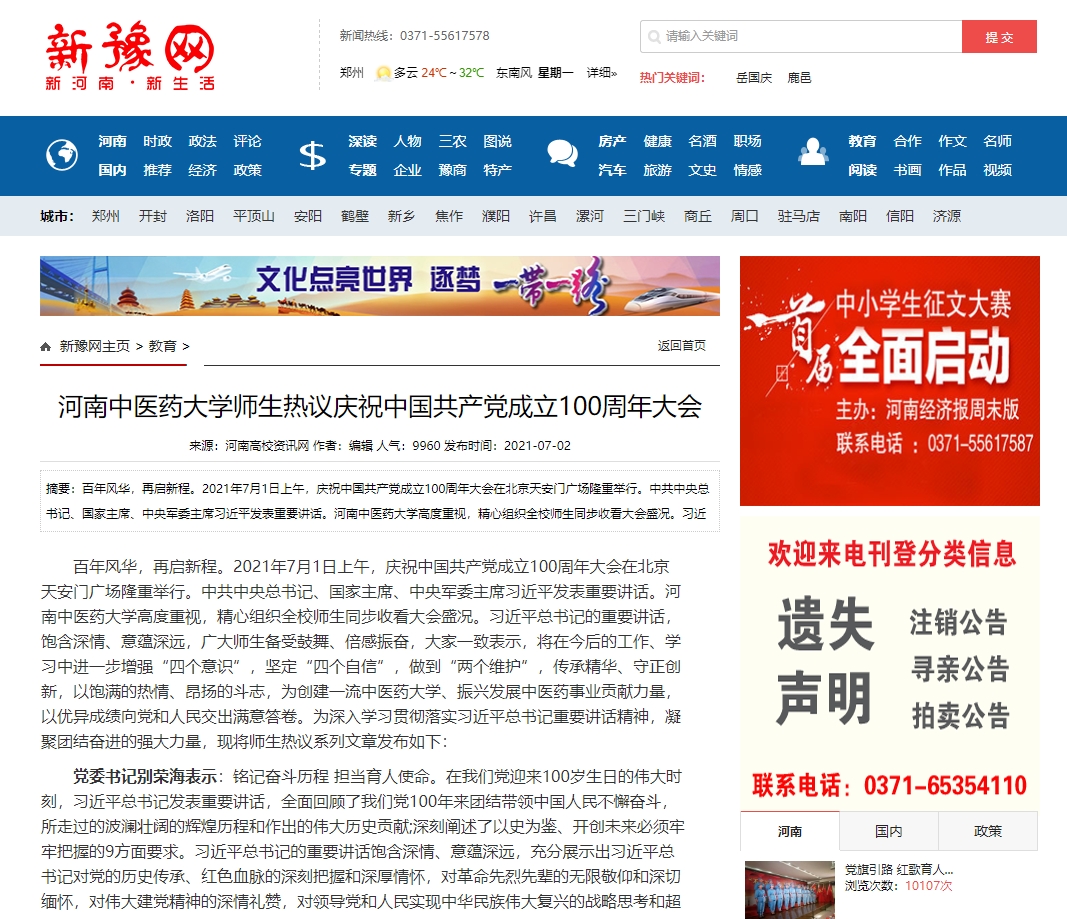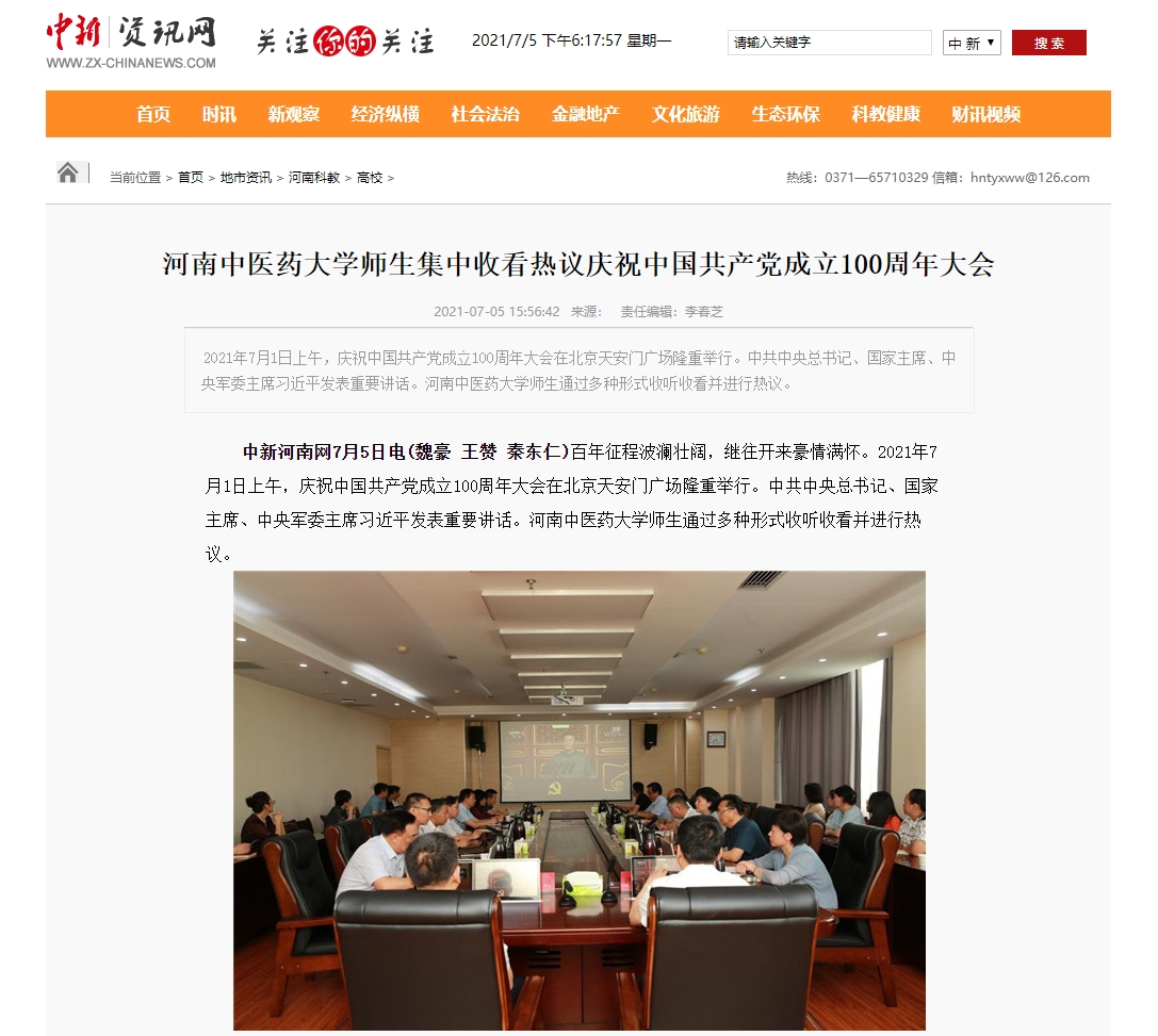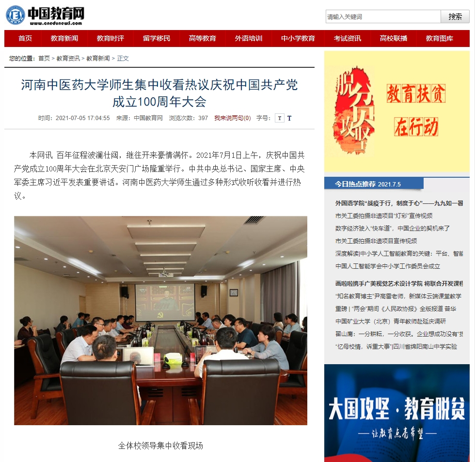 编者按:2021年7月5日,中华网、中国教育网、中华高校网、中新资讯网、河南高校资讯网、新豫网、河南经济论坛等多家媒体对leyu·乐鱼(中国)体育官方网站师生集中收看热议庆祝中国共产党成立100周年大会进行报道。