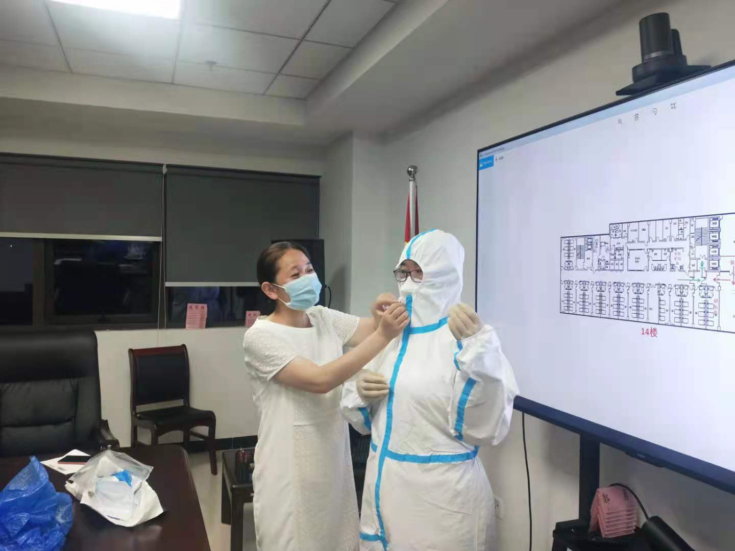 明确任务后,大家立即和医院相关部门进行对接,迅速开展工作。截止8月3日,市三院北院共接收从六院转来病人和家属240人。感控科对当晚即将进驻的8名医护人员进行了一对一的防护用品穿脱、进出隔离病房流程和感控注意事项培训考核。