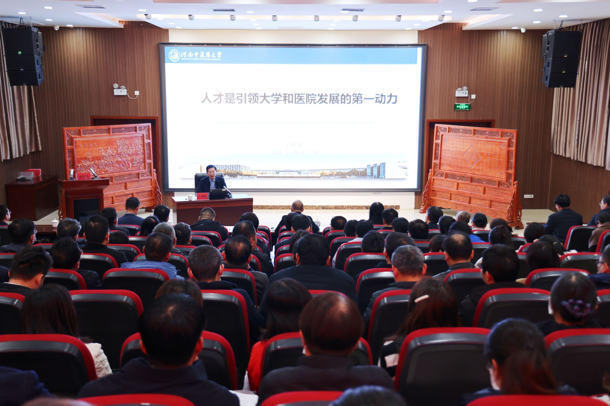 本网讯(文/李冕 图/潘向昆 丁妍 于诗航)为深入学习贯彻党的二十大精神及习近平总书记关于做好新时代人才工作的重要思想,强化提升三附院中层干部的综合能力素质,2023年11月14日,三附院中层干部培训班在学术交流中心顺利举办。本次培训三附院邀请到了校长王耀献来院进行专题授课,三附院、针推学院全体领导班子,各党总支书记、支部书记,中层干部、护士长等参加讲座,会议由三附院党委书记张晓东主持。