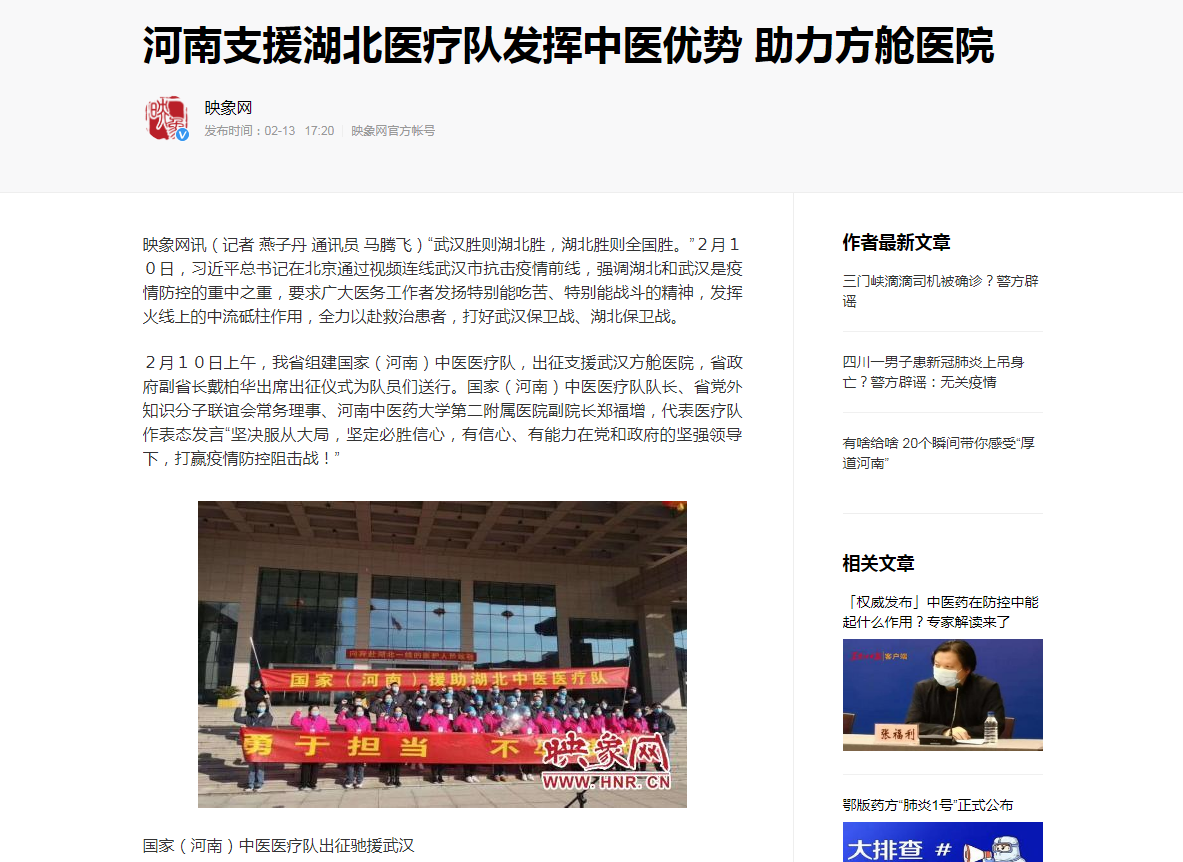 编者按:近日,学习强国、人民网、中国日报中文网、中国新闻网、央广网、映象网等46家外媒广泛报道leyu·乐鱼(中国)体育官方网站国家(河南)援鄂中医医疗队。