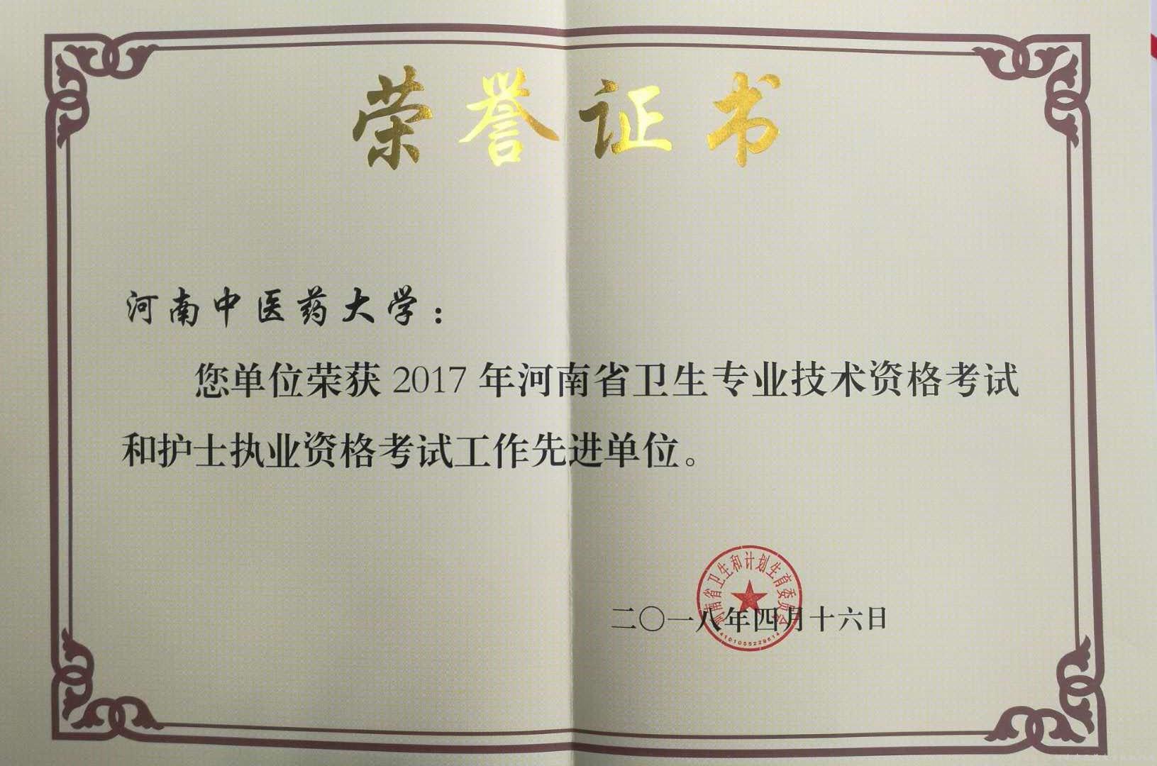 日前,河南省卫生和计划生育委员会召开卫生专业技术资格考试和护士执业资格考试工作会议,对2017年度考试情况进行了总结,对先进考点和先进单位进行了表彰。leyu·乐鱼(中国)体育官方网站被授予2017年度河南省卫生专业技术资格考试和护士执业资格考试先进单位称号。