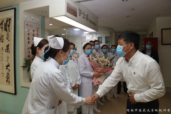 许二平指出,多年来,广大护理工作者爱岗敬业、默默奉献,以实际行动生动诠释了南丁格尔精神。特别是在疫情防控期间,广大医护工作者始终坚守一线,不畏风险、甘于奉献,用爱心细心耐心责任心服务师生和人民群众的身体健康,为抗击新冠肺炎疫情作出了重要贡献,彰显了新时代河中医人“为国担难、为民尽责”的使命和担当。许二平表示,在今后的工作中,希望大家能够继续发扬南丁格尔精神,抢抓中医药事业振兴发展难得历史机遇,求真务实,真抓实干,继续为学校、医院的发展做出新的贡献,以优异成绩献礼党的百年华诞。