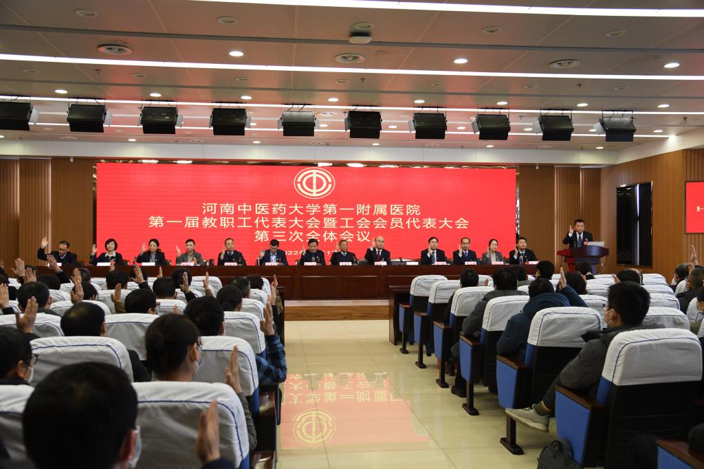 会议讨论、审议、表决、通过医院工作报告、医院财务工作报告、医院章程(草案)、医院工会工作报告、医院工会财务工作报告,表决通过了第一届教职工代表大会暨工会会员代表大会第三次全体会议决议(草案)。