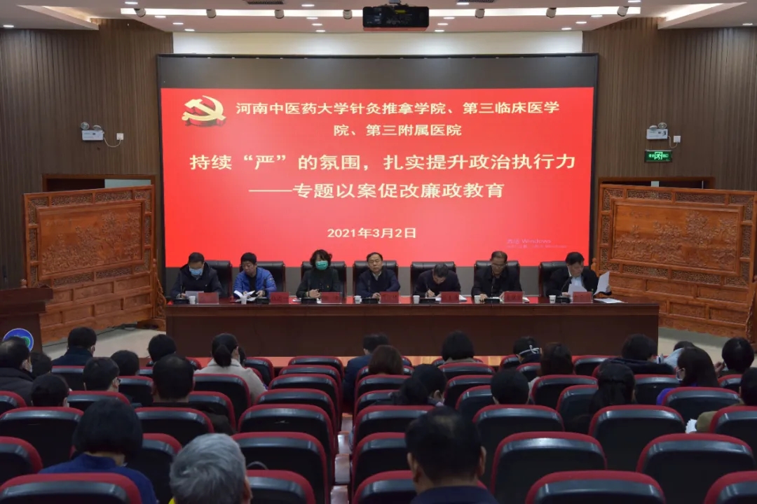 本网讯(文/李博彧 图/田辉)为持续推进以案促改制度化常态化向纵深开展,增强党员干部拒腐防变教育的实效性和感染力,增强廉洁自律意识,2021年3月2日下午,三附院专题以案促改廉政教育会在学术活动中心召开。全体三附院领导、中层干部、院纪委委员、各总支书记、各总支纪检委员、纪委办公室工作人员等参加了大会。会议由三附院纪委书记刘会勋主持。