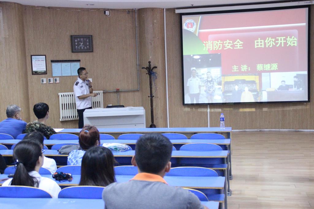 随后,郑州市消防支队宣讲团的蔡继源教员结合社会上近期发生的火灾事故,详细介绍了高校内及居民住宅区常见的火灾隐患,以及防火、灭火、火场逃生自救等基本知识,他还为大家讲授常用灭火器的类型、适用范围和使用要领。