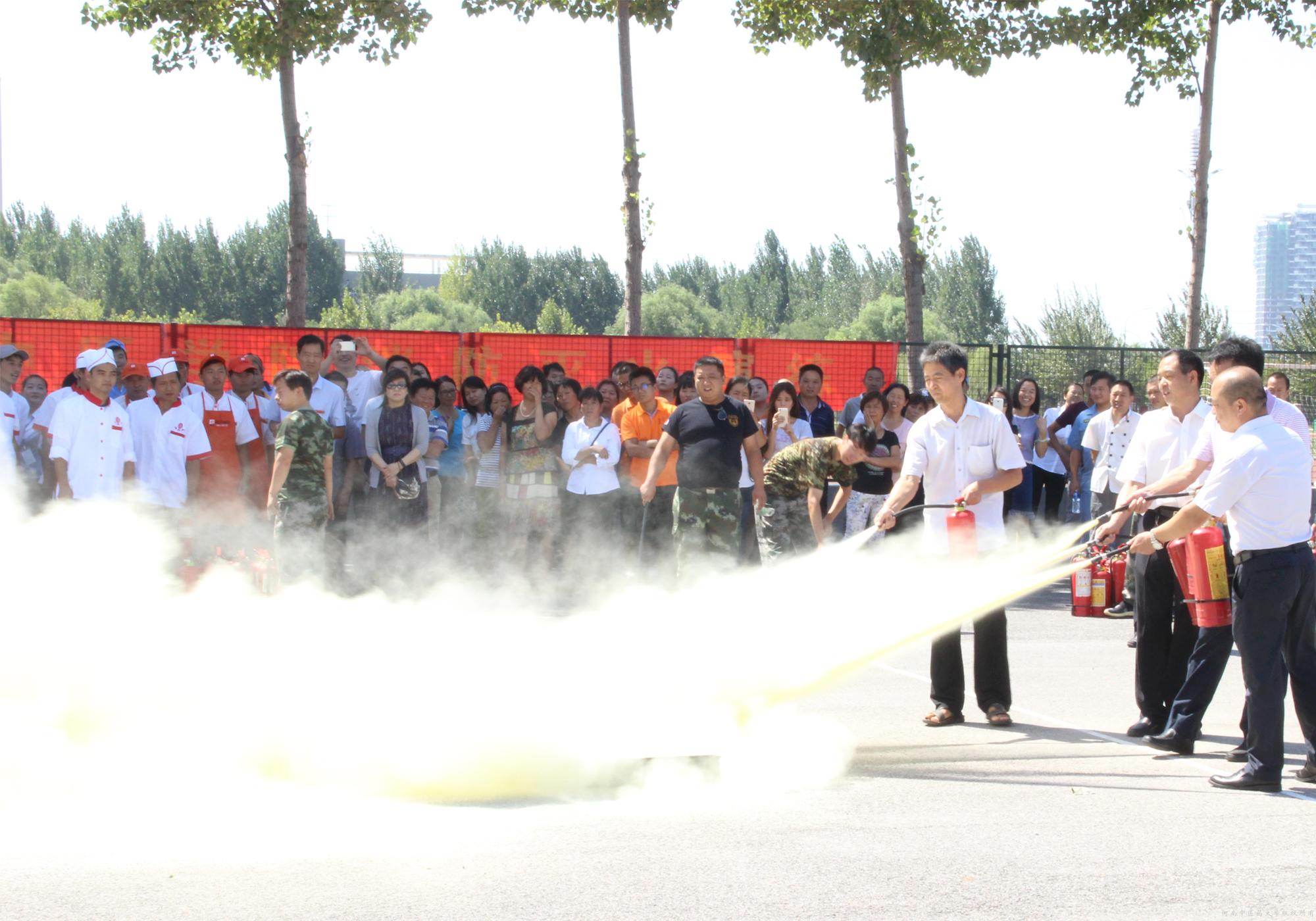 室内培训结束后,大家来到学校操场,保卫处消防科科长刘永池首先为大家讲解了灭火器的使用动作要领;保卫处和集团领导共同为大家作了示范。然后,员工们认真开展了灭火演练,按照正确方法,利用灭火器迅速扑灭了火焰。整个培训和演练过程持续约两个小时。