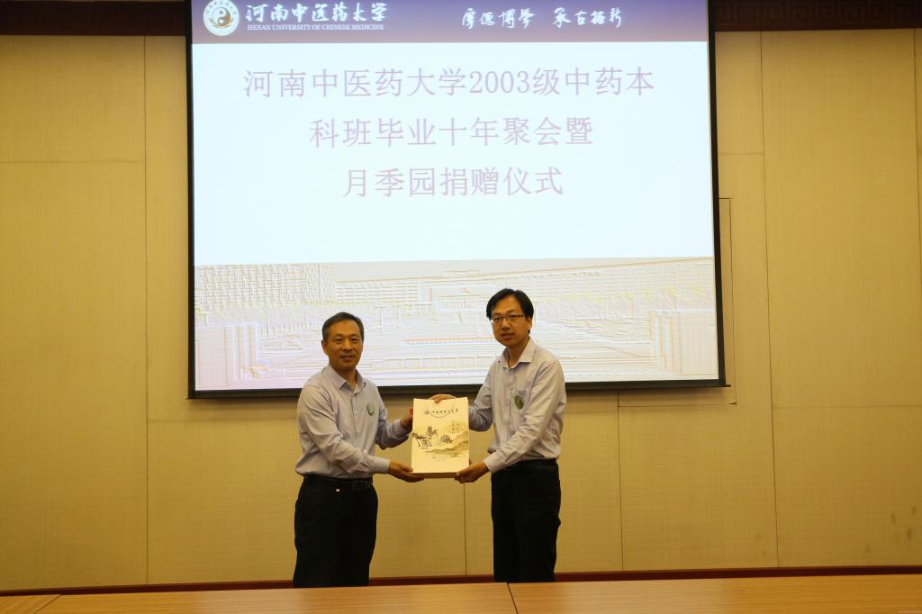 为给学校的中药植物园增添新的景致,校友们向学校捐建了美丽的月季园。徐江雁副校长代表学校接受捐赠并颁发了捐赠证书,还为大家赠送了校徽和校友刊物。