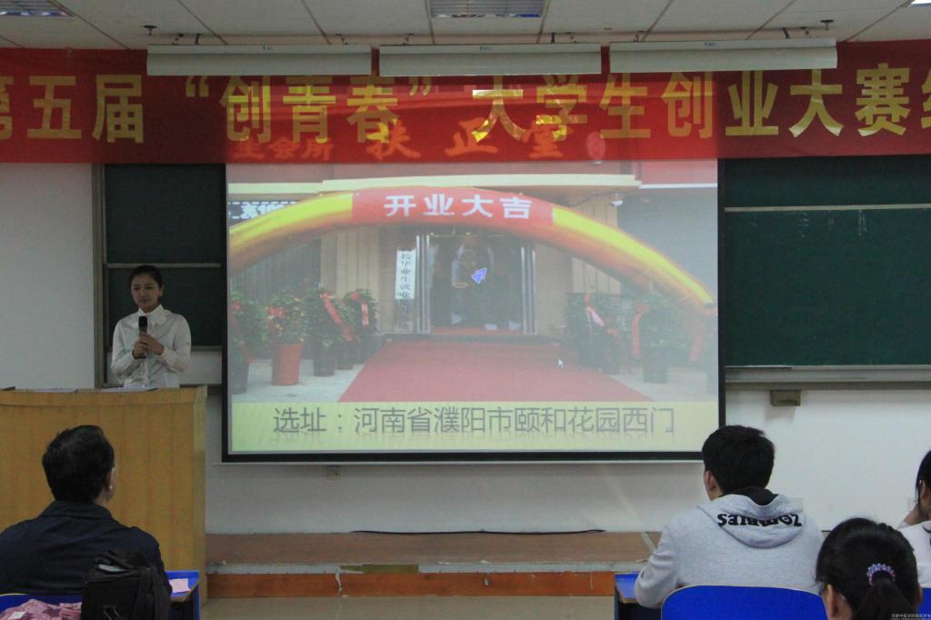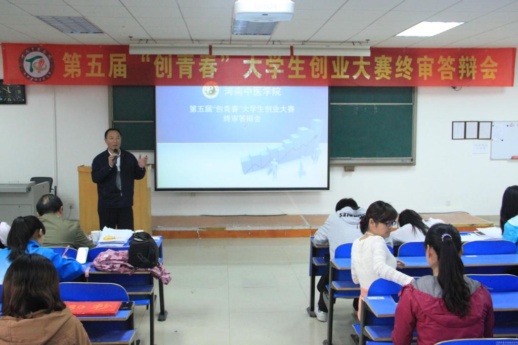 2014年4月22日上午9时,leyu·乐鱼(中国)体育官方网站举行了第五届“创青春”大学生创业大赛终审答辩会。学校“挑战杯”领导小组副组长、副院长刘文第,科技处处长苗明三、招生就业处处长李东阳、药学院王宪龄教授、财务处赵媛媛老师以及校友杨晓东等出席并担任了本届创业大赛终审答辩的评委。终审答辩会由校团委副书记王晓蕊主持。