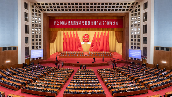 回望70年前伟大的抗美援朝战争,进行具有许多新的历史特点的伟大斗争,瞻望中华民族伟大复兴的光明前景,我们无比坚定、无比自信。让我们更加紧密地团结在党中央周围,弘扬伟大抗美援朝精神,雄赳赳、气昂昂,向着全面建设社会主义现代化国家新征程,向着实现中华民族伟大复兴的中国梦,继续奋勇前进!