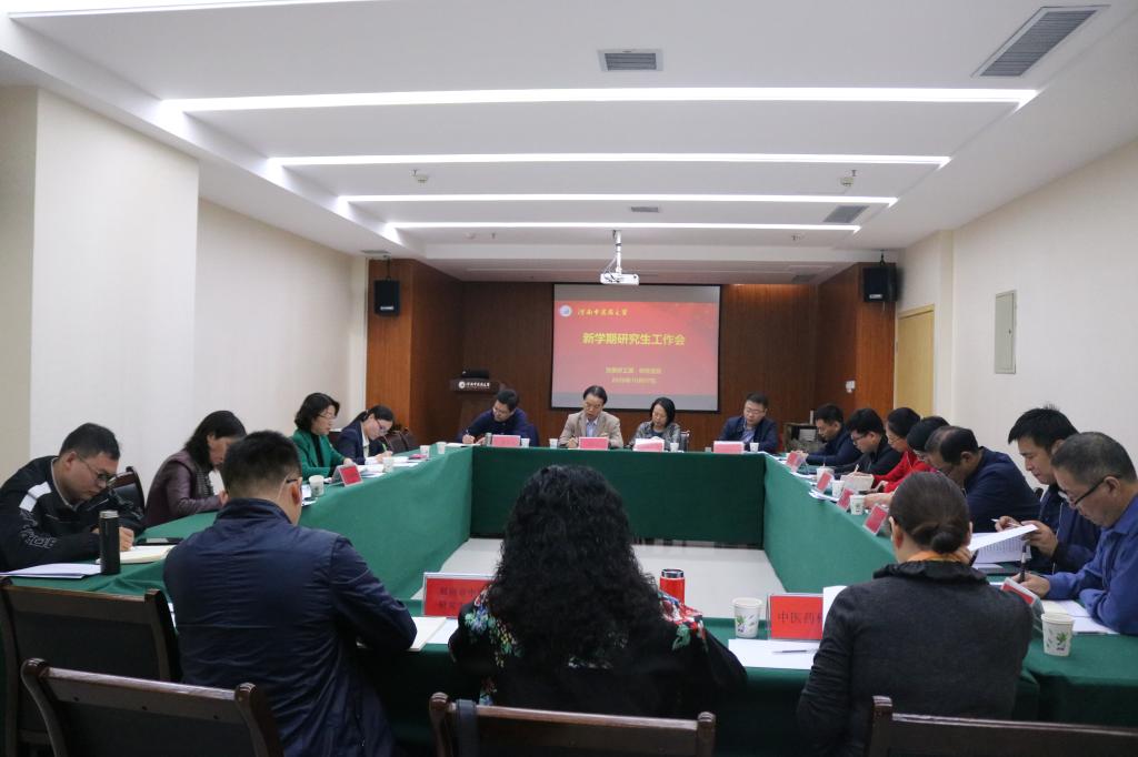 会上,蒋时红领学《关于加快新时代研究生教育改革发展的意见》文件精神,对其中加强思想政治工作、健全“三全育人”机制的有关内容进行重点阐述。结合疫情防控与返校复学工作开展情况,蒋时红对上学期研究生工作进行总结,并对新学期研究生工作进行安排部署。她强调:一是要在全面恢复教学工作的同时,继续做好疫情防控及学生日常管理工作。各培养单位要摸清底数,精准到人,积极开展疫情宣传教育活动,把灾难当教材,与祖国共成长,激励学生成长成才,报效祖国,同时要重点关注研究生的心理疏导工作,强化导师的责任意识,定期与学生沟通交流,了解学生的心理和学业动态;二是要加强安全稳定工作责任意识。各培养单位要深入细致做好日常工作,及时了解学生们的思想和生活诉求,加强新媒体运营的管理工作,强化责任主体,提高应急反应处置能力;三是要围绕研究生思政教育工作持续开展品牌建设,深化内涵要。要以一条主线(立德树人)和两大工程(思政教育质量提升工程、学术创新能力提升工程)为导向,树立大思政格局理念,对研究生导师、专兼职辅导员队伍和研究生骨干队伍要加强培训工作,将思想政治工作融入到学生生活和学习的方方面面。蒋时红还就即将开启的“仲景杯”学术创新活动月、研究生特色项目征集活动、文体心理活动月等相关工作进行安排部署。