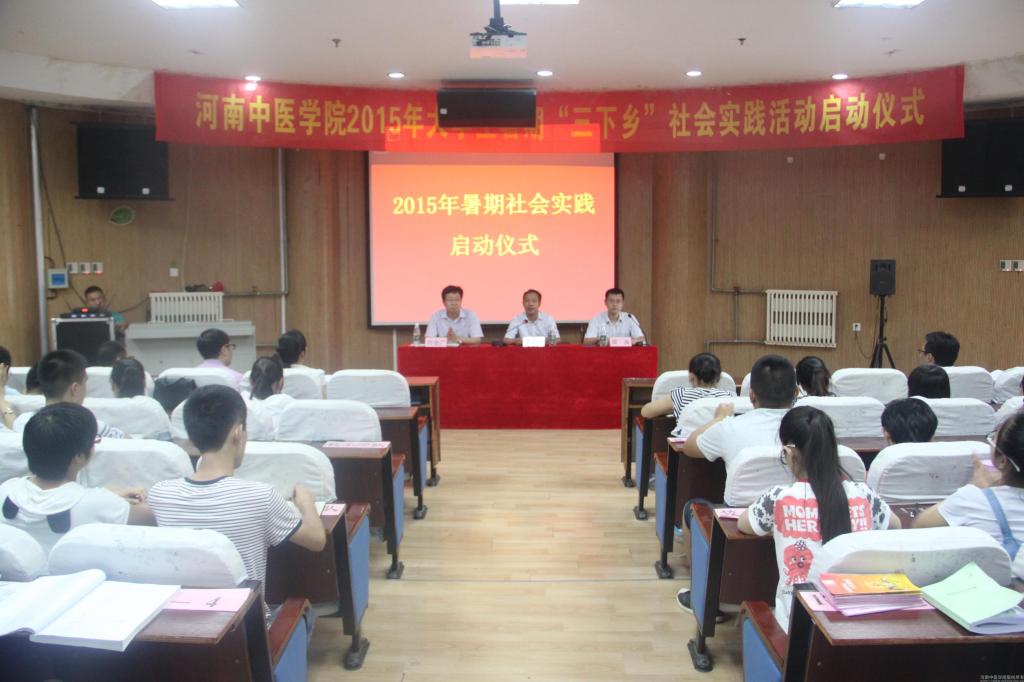 2015年7月6日下午,leyu·乐鱼(中国)体育官方网站2015年大学生暑期“三下乡”社会实践活动启动。学院副院长徐江雁出席了启动仪式,学工部、团委等部门负责人,各二级学院主管学生工作副书记,校团委及各二级院系分团委团干,2013级、2014级辅导员老师,leyu·乐鱼(中国)体育官方网站暑期社会实践10支校级医疗服务、科技支农、义务支教小分队带队老师和队员们,全省109个县乡基层医疗单位学习实践小分队负责人共400余名学生参加了启动仪式。启动仪式由团委副书记高磊主持。