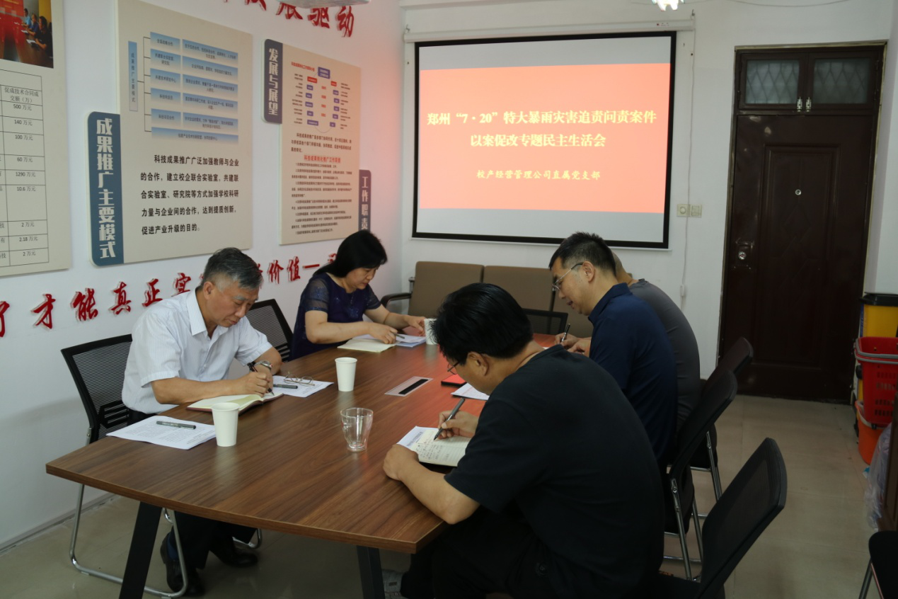 本网讯(文/周伟 图/邱伟)2022年5月30日上午,校产经营管理公司召开郑州“7·20”特大暴雨灾害追责问责案件以案促改专题民主生活会,leyu·乐鱼(中国)体育官方网站副校长司富春,党委组织部副部长马瑜,校产经营管理公司全体班子成员参加会议。校产经营管理公司党支部书记叶险峰主持会议。
