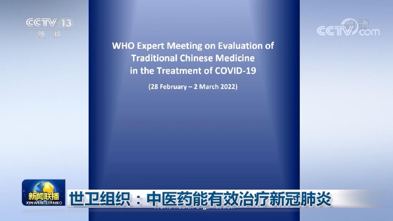 央视网消息(新闻联播):世卫组织日前发布“世界卫生组织关于中医药治疗新冠肺炎专家评估会”的报告。此次会议评估了中国专家组提供的临床应用、研究和循证评价报告。会议最终形成的报告指出,中药能有效治疗新冠肺炎,减少轻型、普通型病例转为重症的情况;对轻型和普通型病例,与单纯的常规治疗相比,以中药作为附加干预措施时,可以缩短病毒清除时间、临床症状缓解时间和住院时间;报告还建议成员国在其卫生体系及监管框架中考虑将中医药纳入新冠肺炎临床管理规划;鼓励成员国考虑使用中国的中西医结合模式、推进国际临床试验。