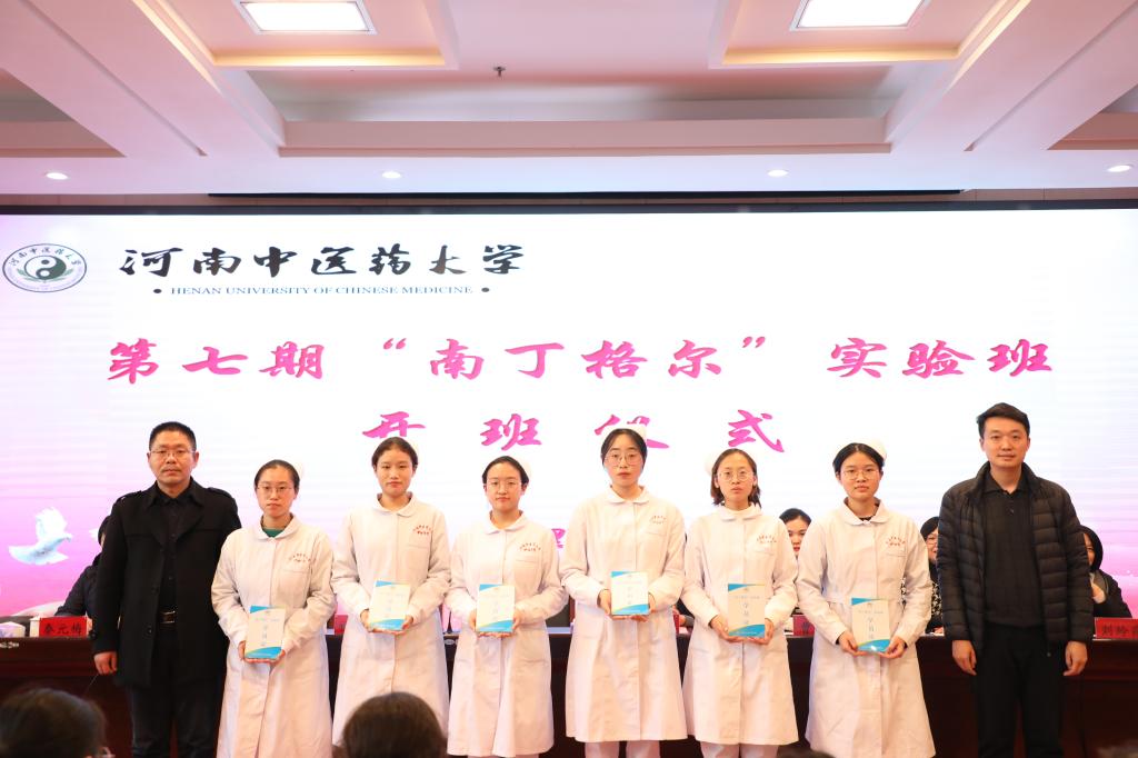 护理学院副院长秦元梅、副院长刘玲霞先后宣读第七期“南丁格尔”实验班导师团名单及学员名单;学员代表湛雨桐发言;宋静回顾了作为班主任的工作体验,对新一期学员未来发展提出了四个方面的建议:第一,常怀爱心、感恩之心、耐心;第二,常修为医之德;第三,夯实专业基础;第四,不断提高综合能力。