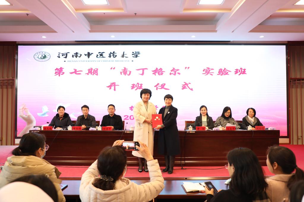 田力在总结讲话中对宋静老师远道而来表示感谢,祝贺第七期“南丁格尔”实验班开班的同时,也充分肯定了护理学院对南丁格尔实验班培养的精心付出及取得的成效。希望同学们从品德修为、知识技能、身心素质、审美能力及劳动能力等方面实现自我发展,珍惜大学时光,苦练本领、增长才干。以实际行动为学校建设国际知名、国内一流的教学研究型中医药大学奉献青春、智慧和力量。现场为宋静老师颁发第七期“南丁格尔”实验班兼职班主任聘书。禄保平与黄怡博为学员代表颁发学员证。